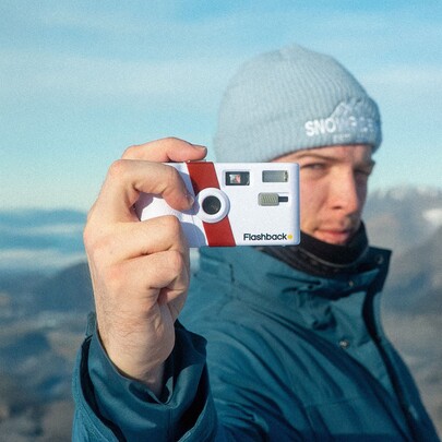 Die Flashback One35 V2 sieht auf den ersten Blick wie eine analoge Kleinbild-Kompaktkamera aus, die in acht unterschiedlichen Farben angeboten wird, wovon zwei sogar teilweise transparent ausgeführt werden. Selbst die Verpackung kommt im Retro-Design. Durch einen kleinen optischen Sucher und den Verzicht auf ein Display sieht man der Kamera ihr digitales Herz nicht direkt an.