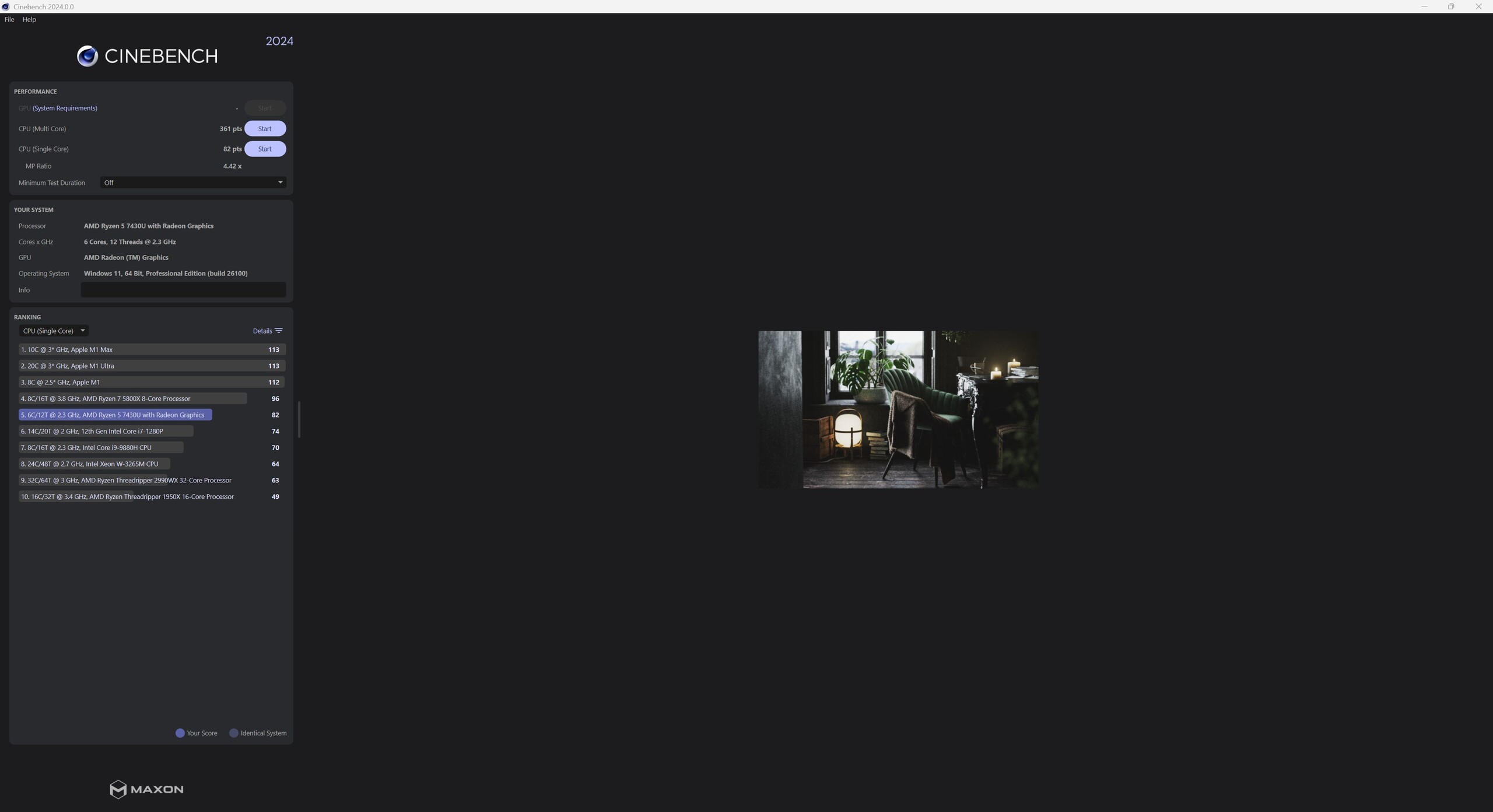 Der Ninkear M7 ist mit dem AMD Ryzen 5 7430U ausgestattet, einem 6-Kern-Prozessor auf Basis der Zen3-Architektur. In unseren Leistungstests ordnet sich der Ninkear M7 entsprechend im Einstiegsbereich ein und richtet sich primär an Nutzer mit Fokus auf einfache Office-, Multimedia- und Alltagsaufgaben. Mit einer Leistungsaufnahme von 25 Watt arbeitet der Prozessor sparsam, sorgt schlussendlich aber auch für eine eingeschränkte Leistungsfähigkeit. Untermauert wird dies zudem durch die RAM-Konfiguration, welche mit einem Modul nicht optimal ist.