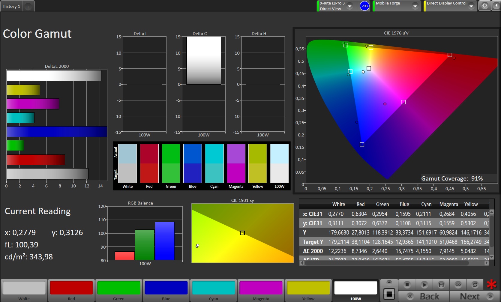 | Delta E Colorchecker * | 8.1 | 2.7 67% | 1.56 81% | 6 26% | 6.16 24% | 2.82 65% |