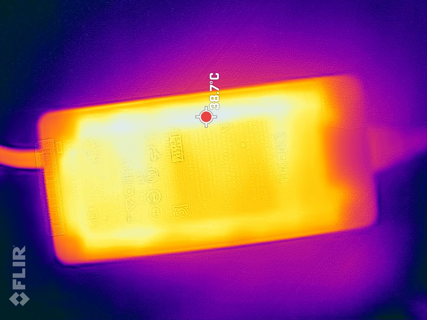 (-) Auf der Unterseite messen wir eine maximalen Wert von 47 °C (im Vergleich zum Durchschnitt von 43.3 °C).