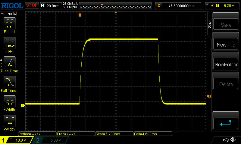 | 14 ms ... steigend ↗ und fallend ↘ kombiniert | ↗ 7 ms steigend | |