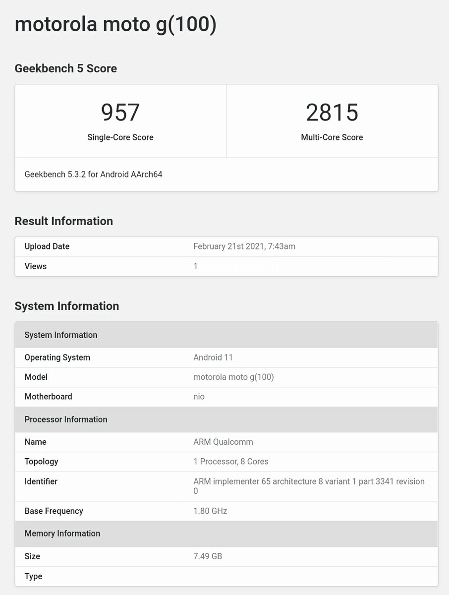 Das ist nicht nur eine Vermutung sondern basiert seit dem 21. Februar 2021 auch auf einem handfesten Indiz, nämlich einem Geekbench-Eintrag, der ebenfalls von Abishek Yadav in der Datenbank des Benchmark-Riesen entdeckt wurde. Auch hier wird das Motorola-Flaggschiff mit der Quad-Cam an der Rückseite und den zwei einzelnen Displaylöchern an der Front mit dem leicht für 2021 aufgefrischten Snapdragon 865 mit Adreno 650-GPU geführt, gemeinsam mit 8 GB RAM und auf Basis von Android 11.