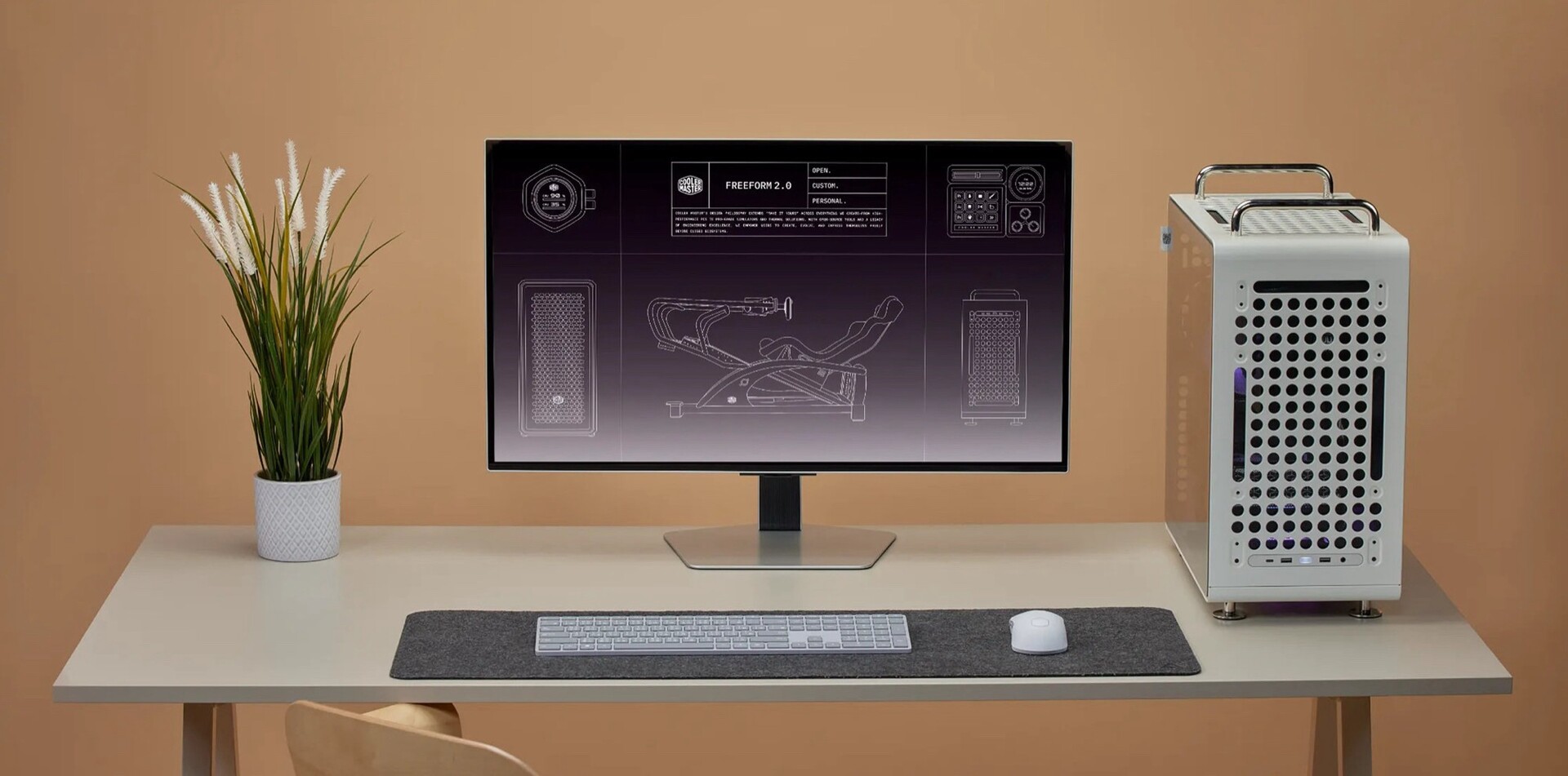 Wer einen 3D-Drucker besitzt, findet auf Printables schon jetzt zahlreiche Erweiterungs-Optionen, sowohl von Cooler Master als auch von anderen Kunden. Neben praktischen Ergänzungen wie Halterungen für Kopfhörer, Tastaturen und Smartphones finden sich unter den Daten auch dekorative Erweiterungen, wie der Kopf eines Huhns oder die Tentakel eines Oktopus. Ein Drehteller erlaubt es, das Gehäuse um 360 Grad zu rotieren, vorausgesetzt, es sind keine Kabel im Weg.
