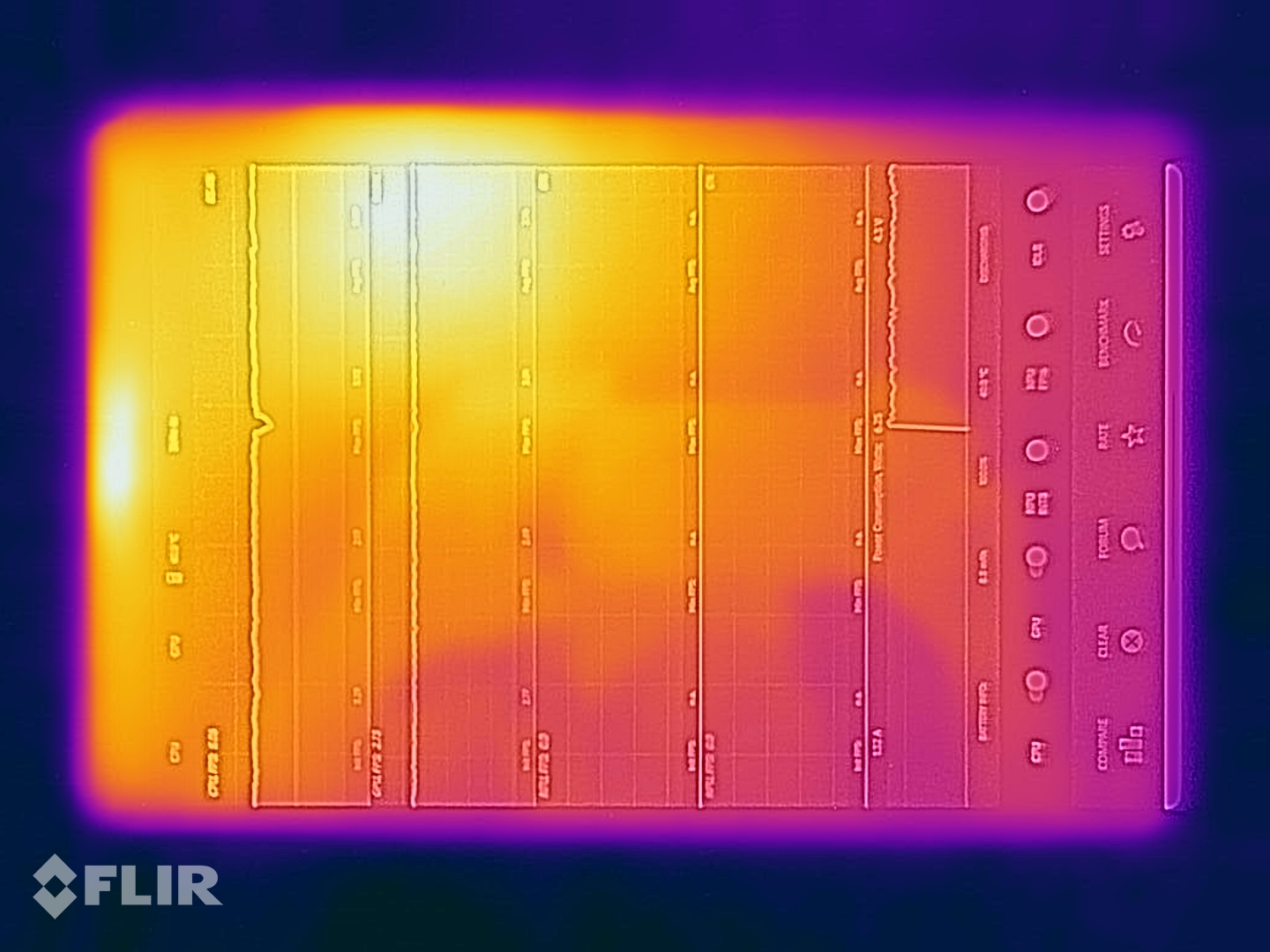 (+) Auf der Unterseite messen wir eine maximalen Wert von 35.3 °C (im Vergleich zum Durchschnitt von 33.2 °C).
