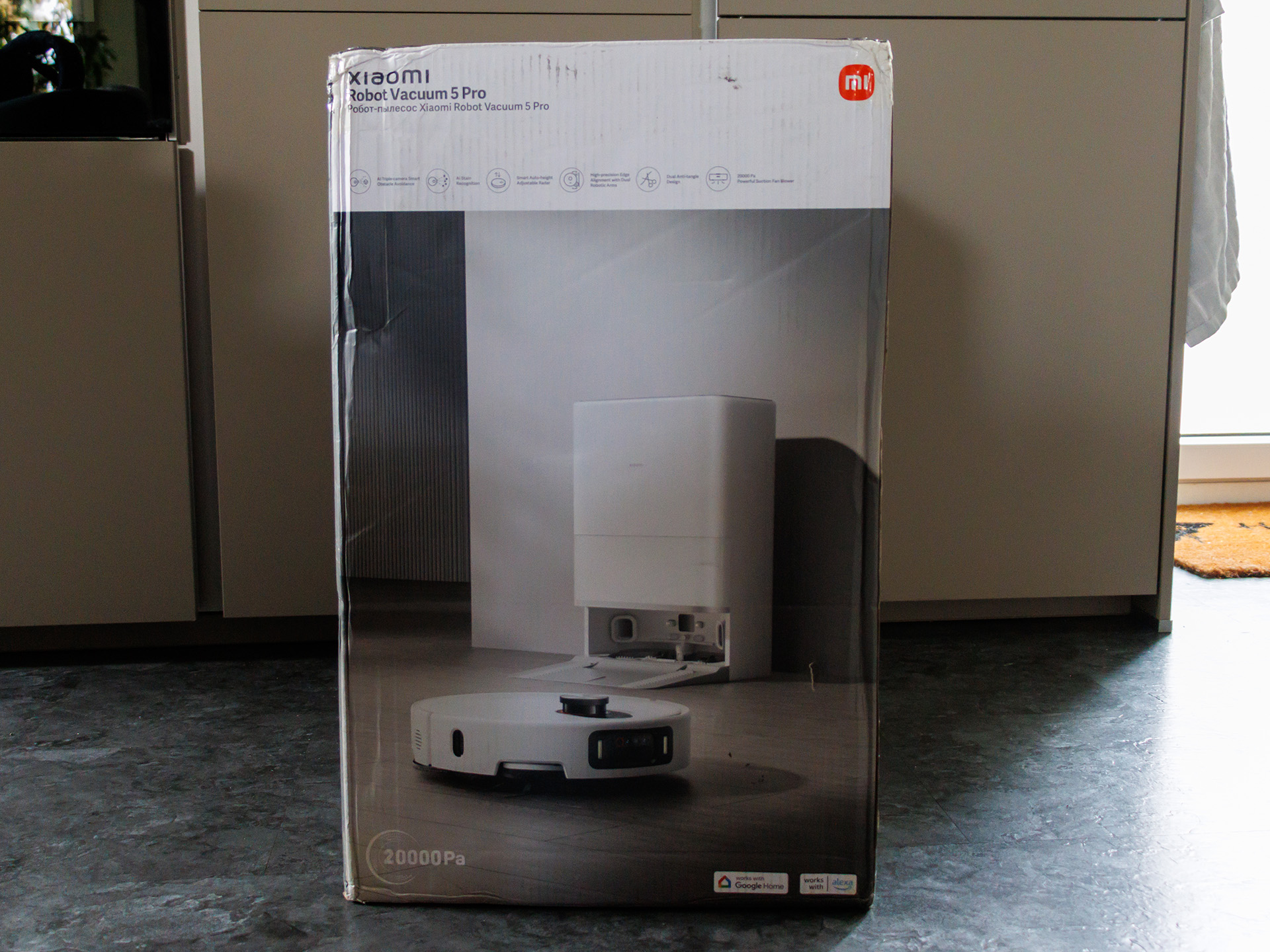 Zur Ausstattung gehört eine All-in-One-Basisstation, die den Staubbehälter automatisch absaugt, die Wischmopps mit Wasser reinigt und sie anschließend mit Warmluft (80 °C) trocknet, wodurch sich Wartungsaufwand und Geruchsbildung reduzieren. Ein großer Akku ermöglicht Laufzeiten von rund zwei Stunden, während der Roboter bei Bedarf selbstständig zur Station zurückkehrt und danach an der unterbrochenen Stelle weitermacht. Gesteuert wird der Xiaomi Robot Vacuum 5 Pro über die Xiaomi Home App mit Kartenverwaltung, Raumaufteilung, Sperrzonen und individuellen Reinigungsplänen; zusätzlich stehen gängige Sprachassistenten zur Verfügung, um die Reinigung bequem per Sprachbefehl zu starten oder in Smart-Home-Szenarien einzubinden.