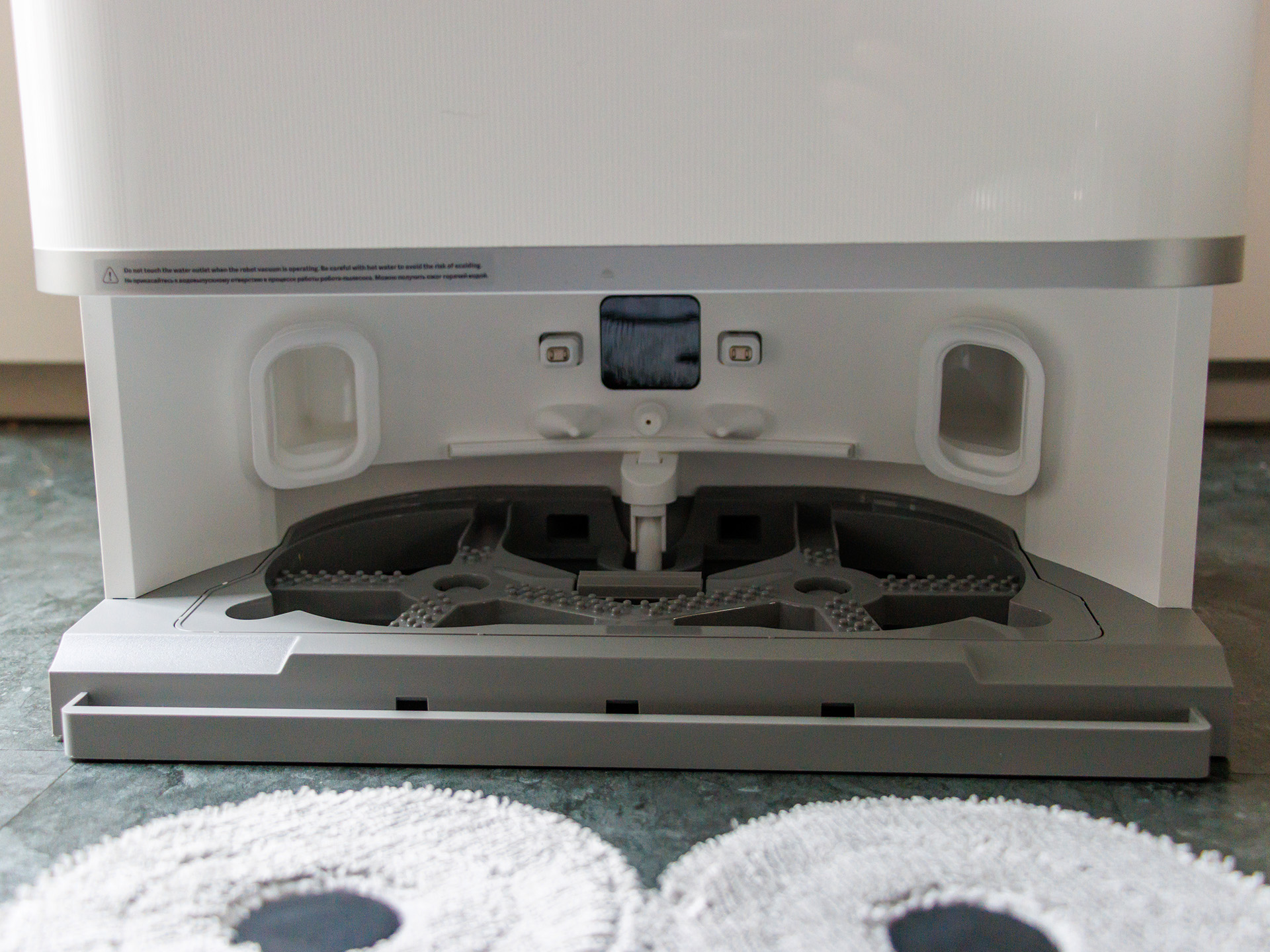 Die rotierenden Mopps mit variabler Wasserstufe lösen die meisten Flecken. Sind diese bereits angetrocknet, kann aber auch ein Wiederholungsgang notwendig sein. Die Schmutzerkennung funktioniert recht ordentlich, fantasiert aber gelegentlich auch Flecken, die nicht vorhanden sind. Bei Fahrten über Teppich werden die Mopps automatisch angehoben.