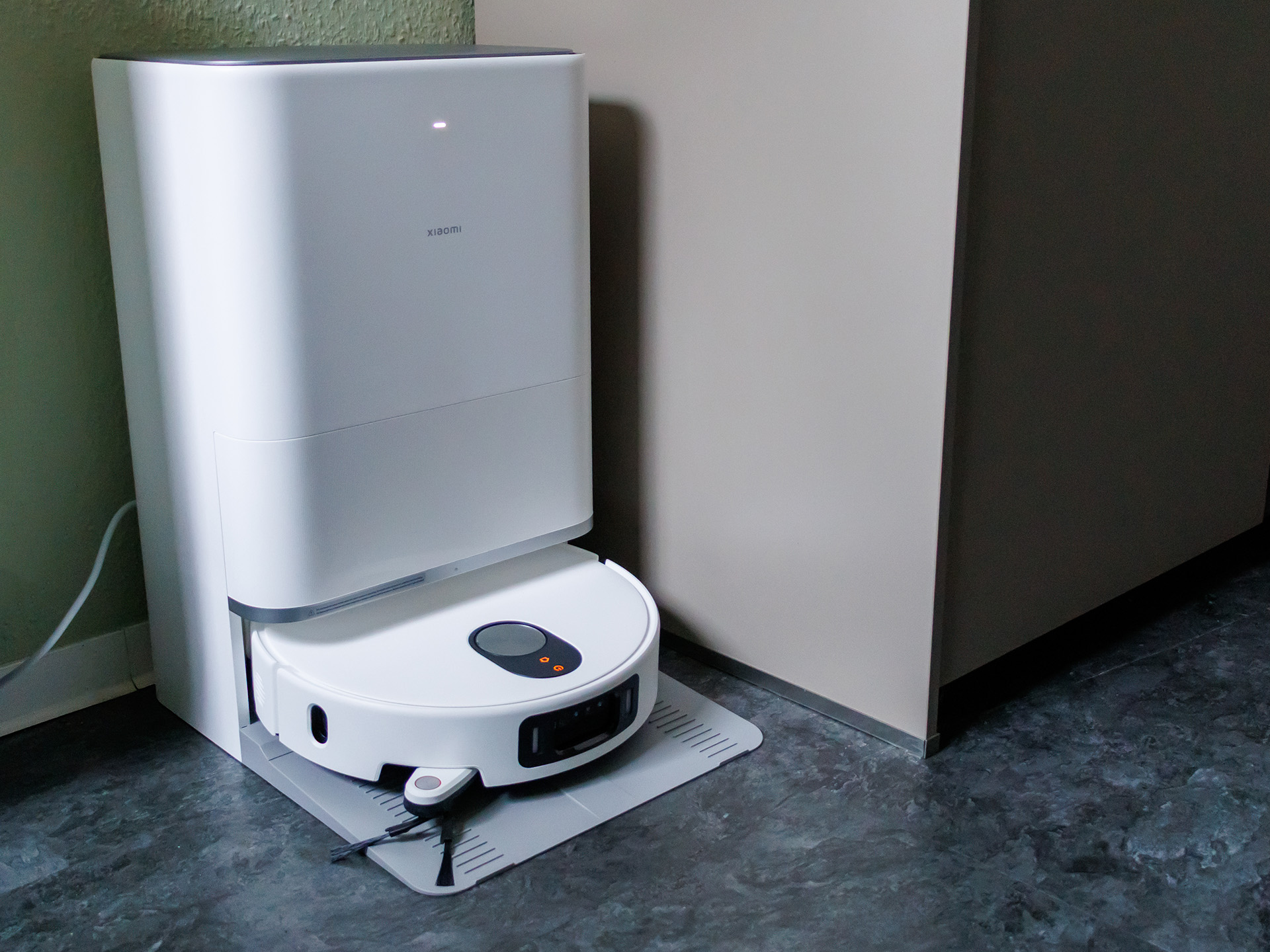 Die Reinigungsleistung glänzt auf Hartböden mit gründlicher Entfernung von Staub und Flecken durch rotierende Mopps mit variabler Wasserstufe, die bis 240 m² pro Tank abdecken; Kanten werden effektiv bearbeitet, Teppiche fordern jedoch die maximale Leistungsstufe und Mehreinsätze, da der Standardmodus gerne mal Reste liegen lässt. Die All-in-One-Station entleert den kleinen Staubbehälter automatisch, wäscht Mopps bei 80 °C und trocknet sie, reduziert so Wartung und Gerüche, bleibt aber ohne Reinigungsmittel auf klarem Wasser beschränkt.