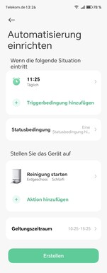 Die Funktionalität der App ist vielfältig und der Xiaomi Robot Vacuum 5 Pro lässt sich umfassend einstellen, sei es nun in Bezug auf die Reinigungsleistung, -modi oder Geschwindigkeit. Außerdem kann auch definiert werden, nach wievielen Quadratmetern Putzen der Saug-Wischroboter sich selbst reinigen soll. Neben dem manuellen Start der Reinigung lassen sich auch Automatisierungen einrichten.