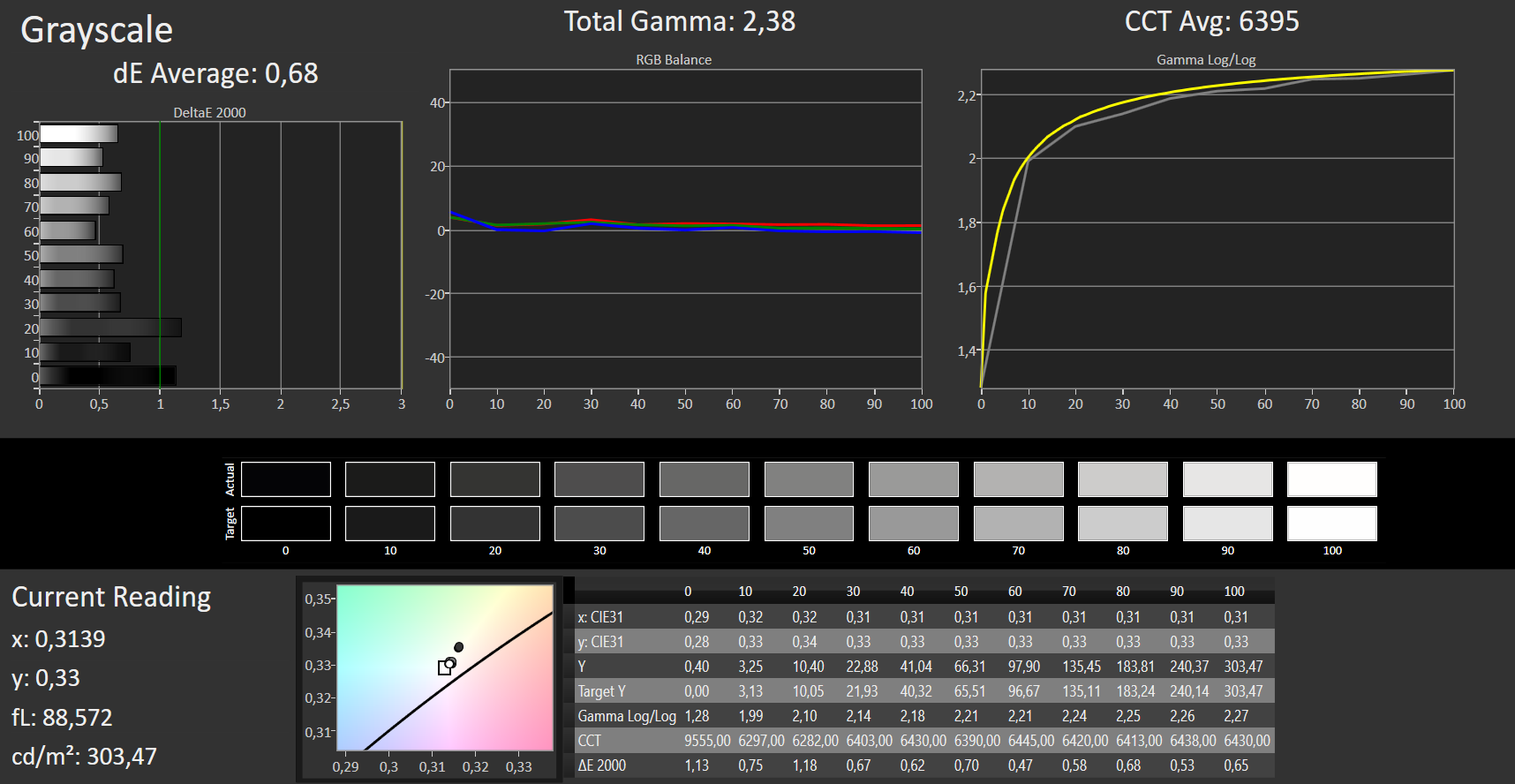 ΔE Greyscale Calman: 3.23 | ∀{0.09-98 Ø5}