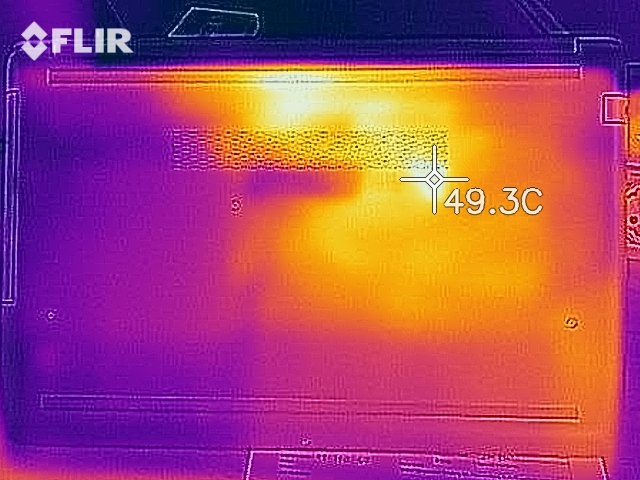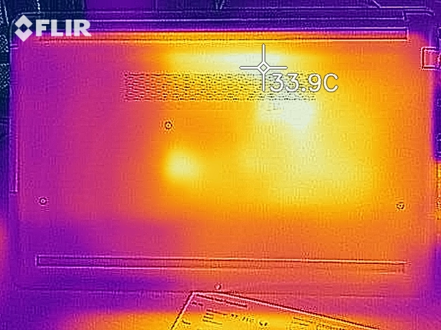(+) Die Handballen und der Touchpad-Bereich sind mit gemessenen 27.4 °C kühler als die typische Hauttemperatur und fühlen sich dadurch kühl an.