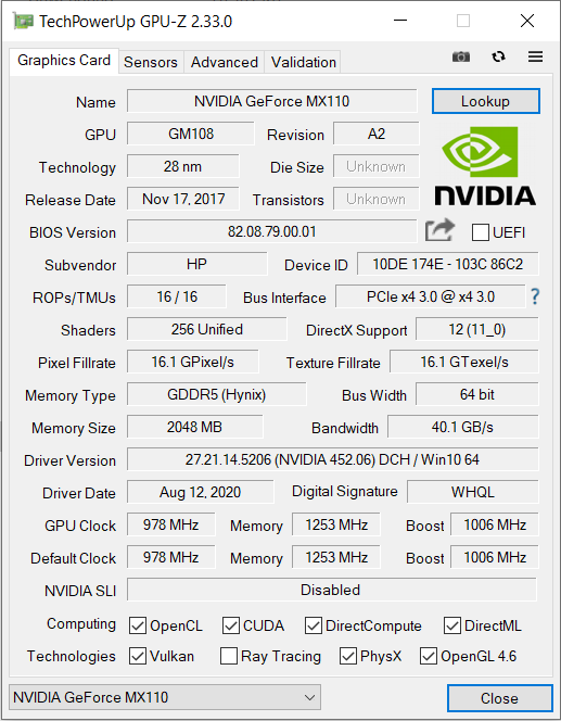 | 75.4 % v7 (old) | 09 / 2020 | HP 250 G7-15S40ES i5-1035G1, GeForce MX110 | 1.8 kg | 22.5 mm | 15.60" | 1920x1080 | |