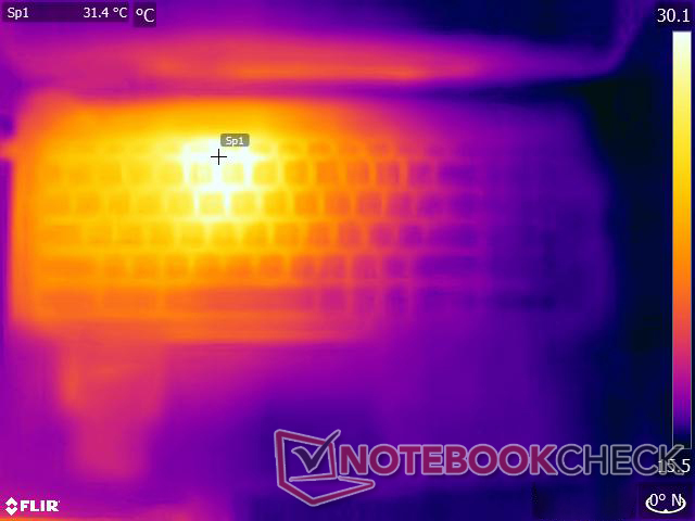 (+) Die Handballen und der Touchpad-Bereich sind mit gemessenen 28.2 °C kühler als die typische Hauttemperatur und fühlen sich dadurch kühl an.