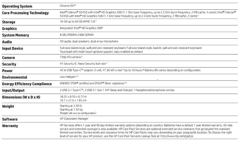 Das 14 Zoll-Modell richtet sich nicht explizit an den schulischen Bereich, teilt aber viele Features mit dem kleineren Chromebook 11 oben. Das 14 Zoll-Display gibt es optional mit Touchfunktion sowie entweder mit HD- oder FullHD-Auflösung. Auch hier stehen wieder ein Celeron N3450 oder N3350 mit 8 GB RAM sowie maximal 64 GB eMMC 5.0-Speicher zur Verfügung, der Akku fasst auch hier 45 Wh. Funktechnisch und in Bezug auf die verfügbaren Anschlüssen gibt es ebenfalls keine Unterschiede zum 11 Zöller, geladen wird auch hier via USB-C. Die Verfügbarkeit soll ebenfalls im Februar gegeben sein.