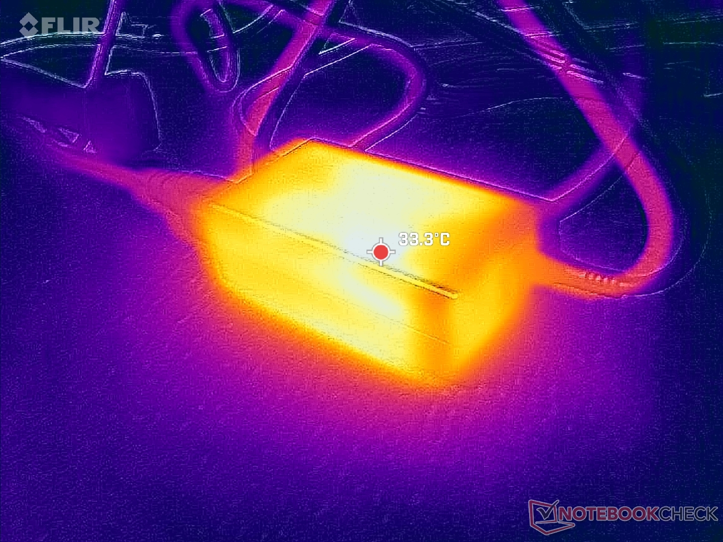 Wir konnten mit dem kleinen (~8,9 x 5 x 2,8 cm) 65-W-USB-C-Netzteil eine maximale Leistungsaufnahme von 69 W messen.