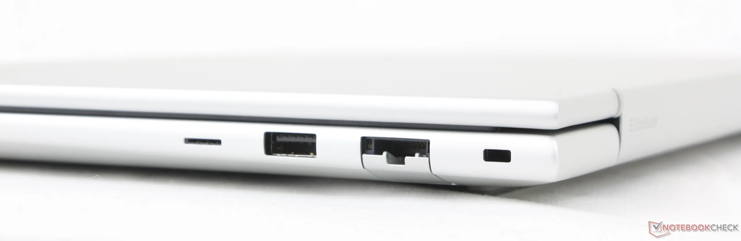 Es gibt eine beeindruckende Anzahl von integrierten Anschlüssen für dieses EliteBook Einsteigermodell. HDMI, RJ-45 und mehrere USB-A-Ports sind alle vorhanden, während das viel teurere EliteBook Ultra G1q viele dieser Anschlüsse vermissen lässt.