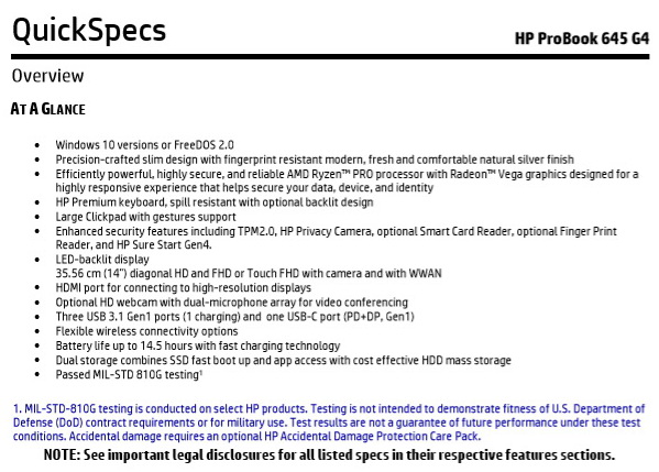 MIL-STD 810G: Das HP ProBook 645 G4 wurde in harten Tests nach Militärstandards auf Langlebigkeit getestet.