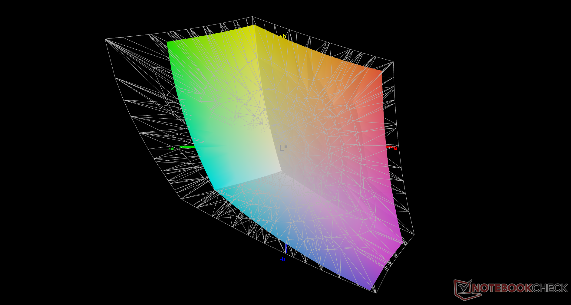 Der Farbraum deckt im Wesentlichen den gesamten sRGB-Bereich ab, um mit den meisten Mittelklasse- bis High-End-Ultrabooks übereinzustimmen. Für AdobeRGB oder DCI-P3 müssen Nutzer stattdessen die Spectre- oder Envy Serie in Betracht ziehen, da dem Dragonfly diese Optionen fehlen.