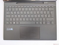 Die Tastatur des Folio 13.5 bietet ein deutliches Feedback und eignet sich gut zum Tippen längere Texte. Eine zweistufige Hintergrundbeleuchtung sorgt auch bei schlechten Lichtverhältnissen dafür, dass die Symbole gut zu erkennen sind. Die Pfeiltasten nach oben und unten fallen etwas kleiner aus, was deren Betätigung erschwert.