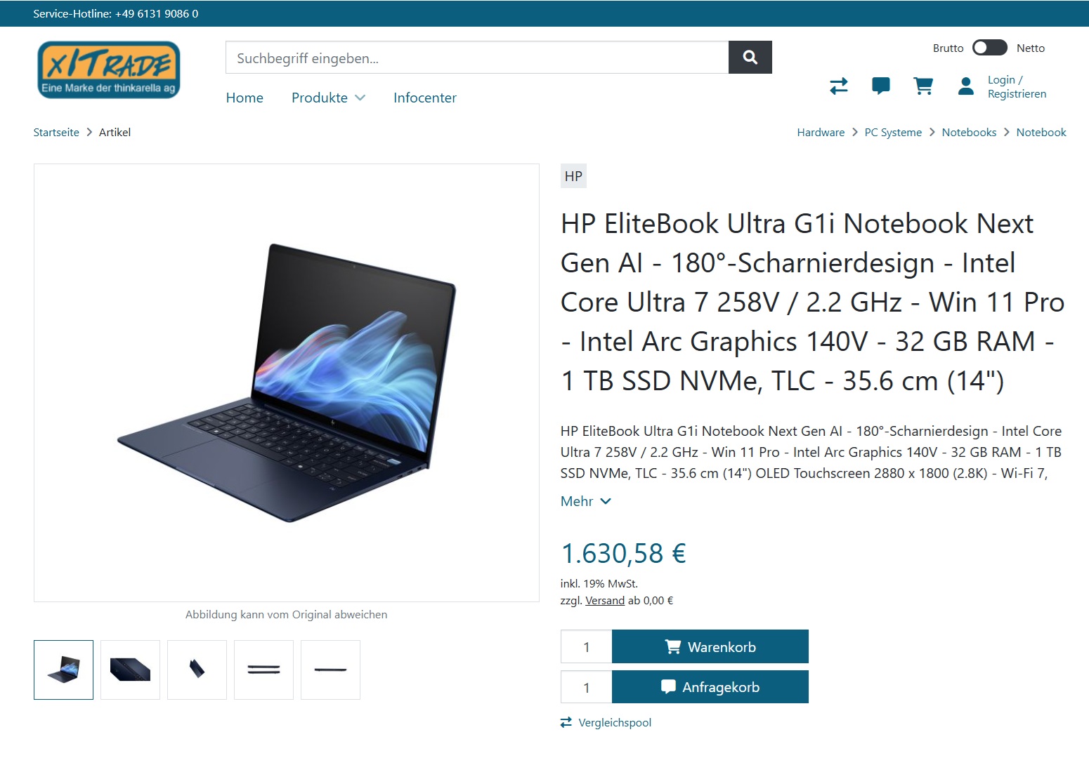 Hewlett Packard hält mit der EliteBook-Ultra-G1i-Reihe eine Serie von hochpreisigen Subnotebooks im 14-Zoll-Format bereit. Aktuell führt Xitra24.de mit dem EliteBook Ultra G1i B66THAT ein gut bestücktes Modell der Serie zu einem Preis von 1.630,58 Euro im Sortiment. Der Rechner ergatterte die Note „Sehr Gut (90 %)“ in unserem Test.