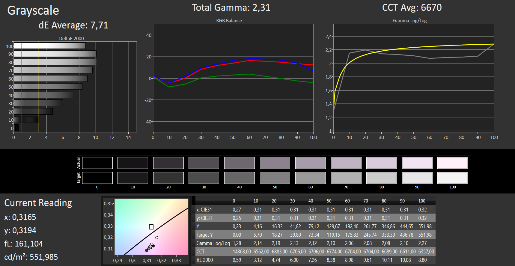 ΔE Greyscale Calman: 7.71 | ∀{0.09-98 Ø5}