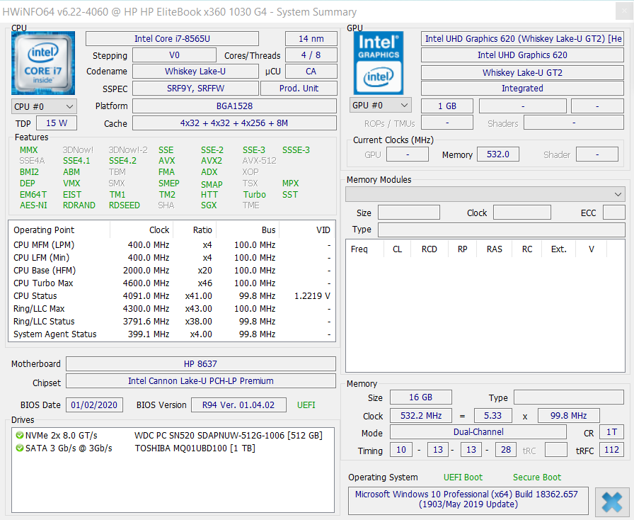 | 89 % v7 (old) | 03 / 2020 | HP EliteBook x360 1030 G4 7YL44EA i7-8565U, UHD Graphics 620 | 1.3 kg | 16 mm | 13.30" | 1920x1080 | |