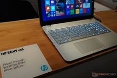 Das relativ große 15,6-Zoll-Notebook verzichtet auf die Integration eines optischen Laufwerks und kann daher sehr schlank ausgeführt werden. Als Bildschirm sind derzeit zwei TN Touch-Displays angedacht: Ein 1366 x 768 Pixel HD und 1920 x 1080 FHD-Display. Mit 2,2 kg bzw. 2,6 kg (Touchscreen Variante) ist das Notebook vergleichsweise leicht. Gefertigt wird das Notebook aus verschiedensten Materialien. Laut HP besteht die Oberschale aus Aluminium, die Unterschale aus Kunststoff und der Displaydeckel aus einem Glasfaser Verbund, der sich haptisch allerdings wie Kunststoff anfühlt.