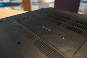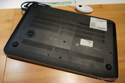 An der schwarzen Kunststoffwanne der Unterseite findet man eine praktische Wartungsklappe hinter der sich lt. Aufschrift Speicher, HDD und WLAN-Karte verstecken. Im Testgerät war eine Intel AC 3160 802.11ac WLAN Karte verbaut.Die Schnittstellen befindet sich auf der linken und rechten Seite des Gehäuses. Vier USB und eine Gigabit LAN Port sind hervorzuheben, als Monitorausgang findet man aber lediglich einen HDMI-Ausgang.