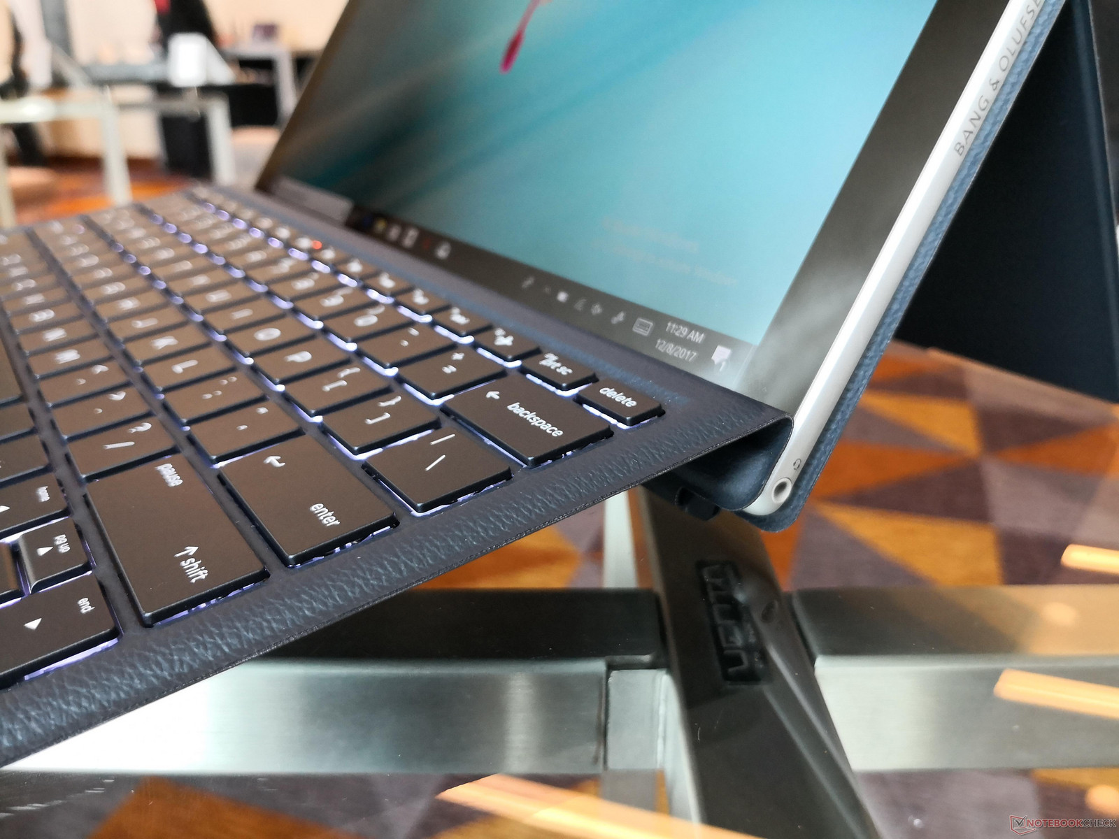 Wie man schon an den Bildern unten erkennt, ist insbesondere das Tastaturcover der beiden Envy X2-Varianten unterschiedlich und nicht miteinander kompatibel. Während das Tastaturlayout gleich bleibt, ist das Trackpad der Intel-Variante etwas kleiner. Auch bei der Aufstellung gibt es weitreichende Unterschiede. Die ARM-Variante ist dank eines Scharniers frei in Winkeln bis zu 180 Grad verstellbar, der Intel-Variante fehlt das Scharnier, was das Cover dünner macht. Dafür gibt es nur mehr fixe und im Vergleich deutlich eingeschränkte Aufklappwinkel. Besser wäre es natürlich gewesen, dem Käufer die Wahl zwischen den beiden Cover-Varianten zu lassen, aufgrund der unterschiedlichen Pogo-Pins sind die beiden aber zueinander inkompatibel.