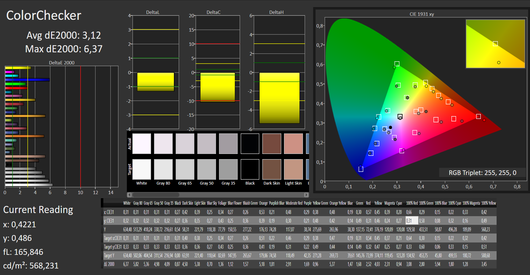 ΔE ColorChecker Calman: 3.12 | ∀{0.5-29.43 Ø4.78}