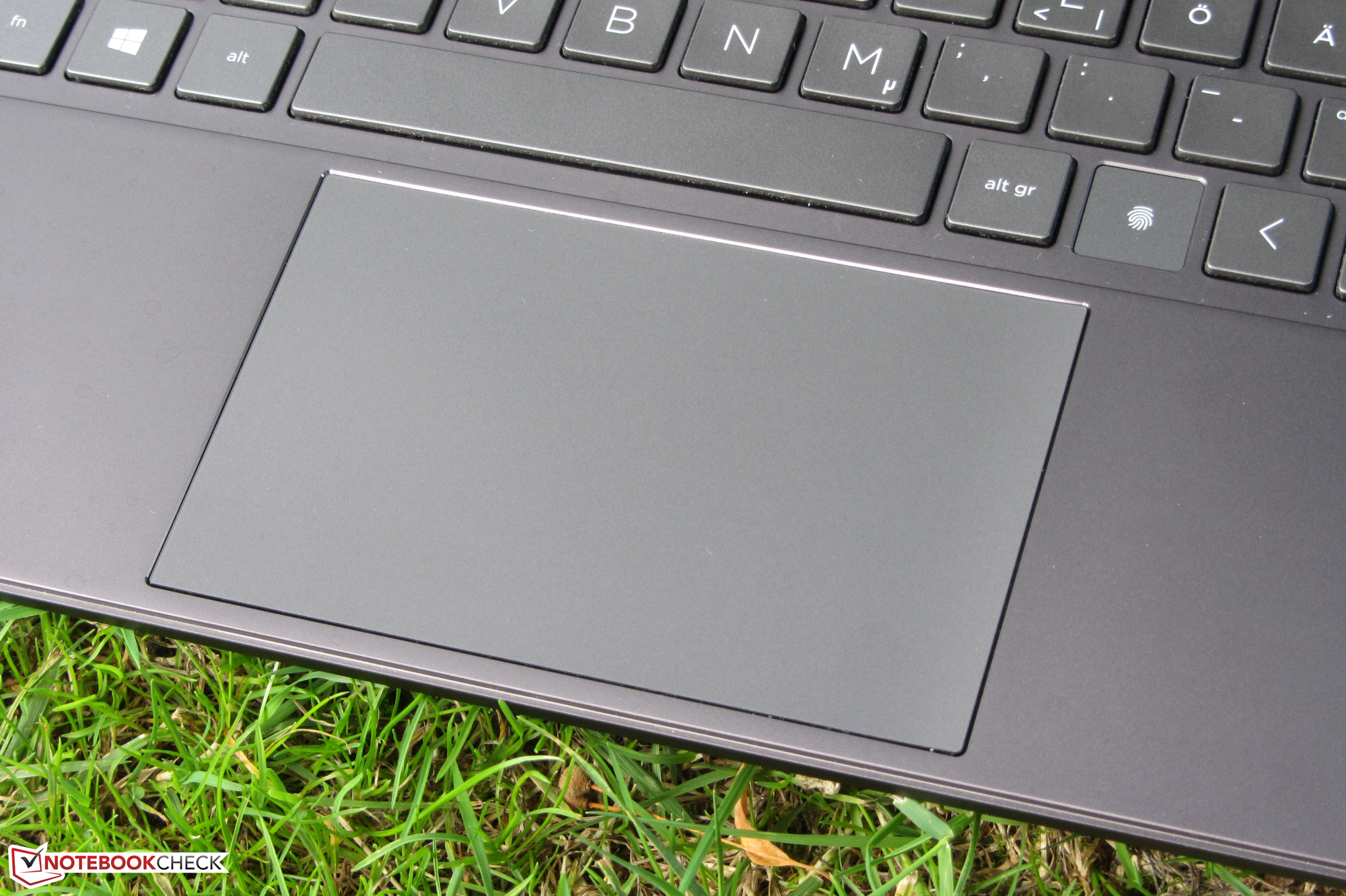 Die flachen, glatten Tasten der beleuchteten Chiclet-Tastatur (zwei Helligkeitsstufen) verfügen über einen kurzen Hub und einen deutlichen Druckpunkt. Während des Tippens gibt die Tastatur nicht nach. Alles in allem liefert HP hier eine alltagstaugliche Tastatur, die auch zur regelmäßigen Erledigung von Schreibarbeiten geeignet ist.