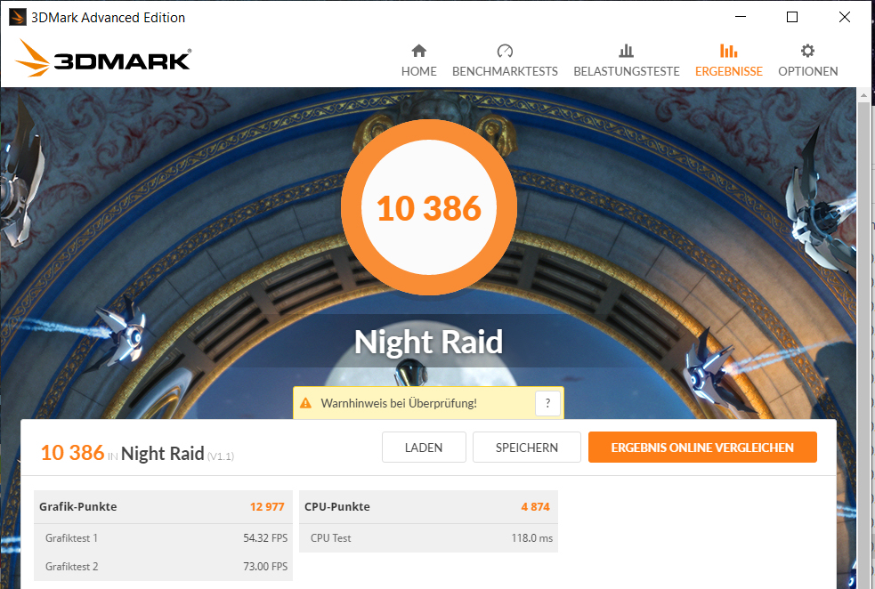 | 3DMark Time Spy Score | 1047 Punkte | |