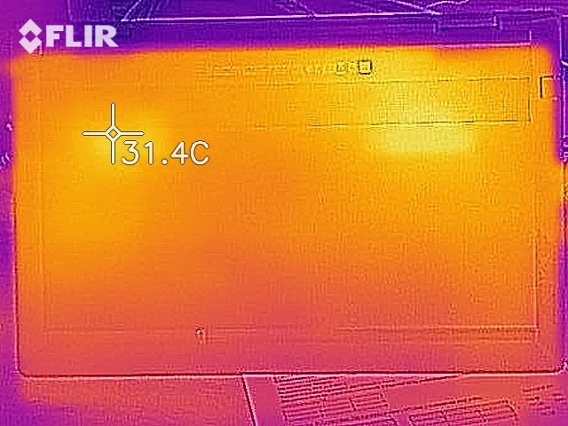 (+) Die Handballen und der Touchpad-Bereich sind mit gemessenen 30.6 °C kühler als die typische Hauttemperatur und fühlen sich dadurch kühl an.