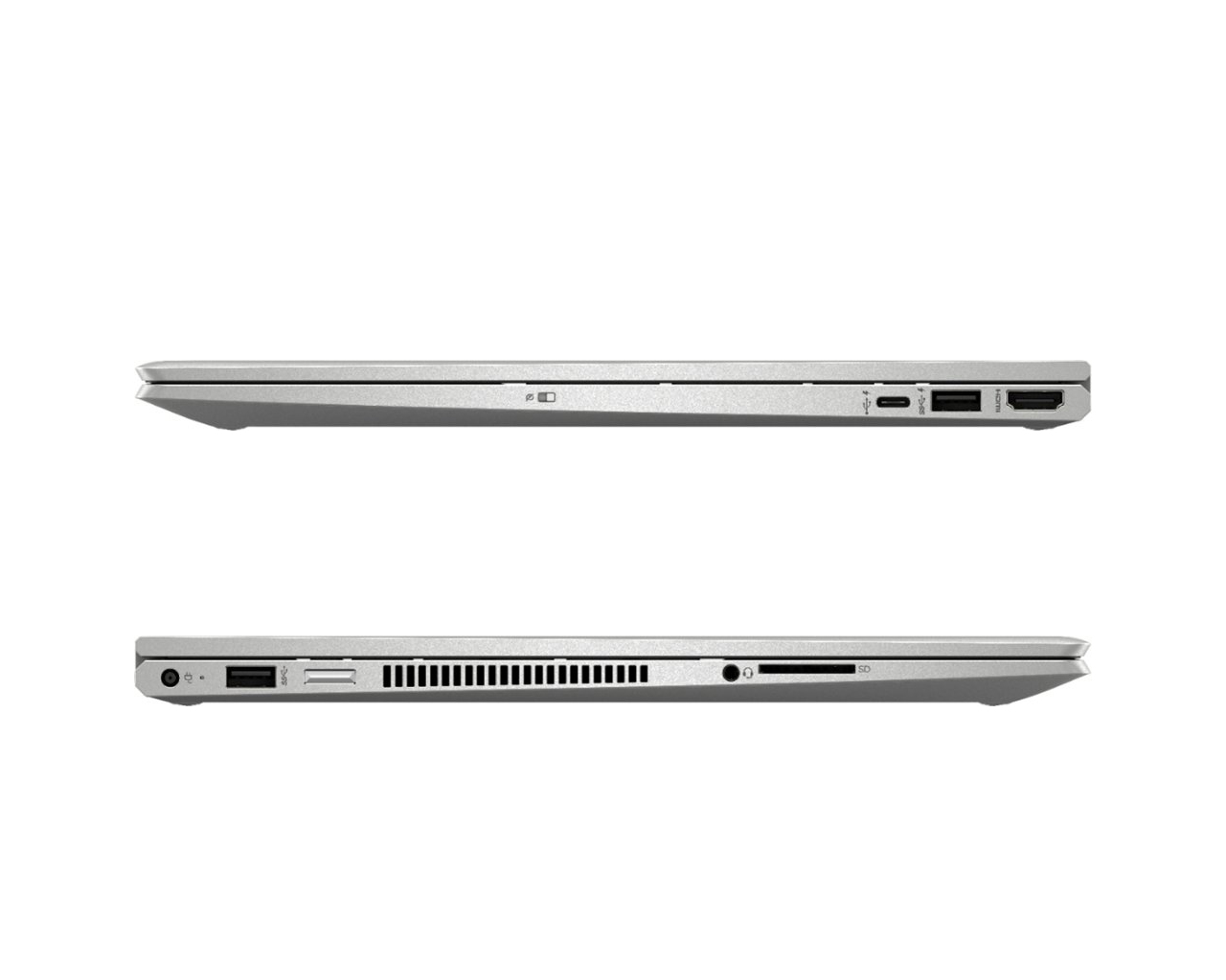 EN→DEThis HP Envy X360 2 in 1 device measures 35x22.5x1.5cm at the back, it is 1cm at the front, it weighs 1782 grams. Going around the outside has a USB3, 3.5mm socket for headphones and an SD socket on the left. The front is clear. The right side has a USB3, HDMI and two USB 'C' sockets. The back is also clear as the Notebook screen rotates through 180 degrees to become a Tablet. The initial startup is 55 minutes including extra updates after startup and BIOS and Firmware updates until you have a fully updated machine.