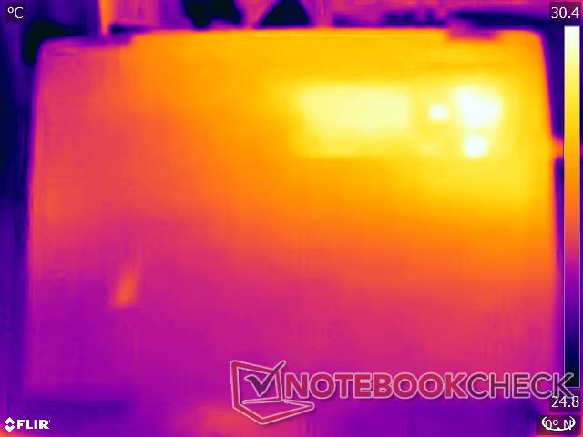 (+) Die Handballen und der Touchpad-Bereich sind mit gemessenen 29 °C kühler als die typische Hauttemperatur und fühlen sich dadurch kühl an.