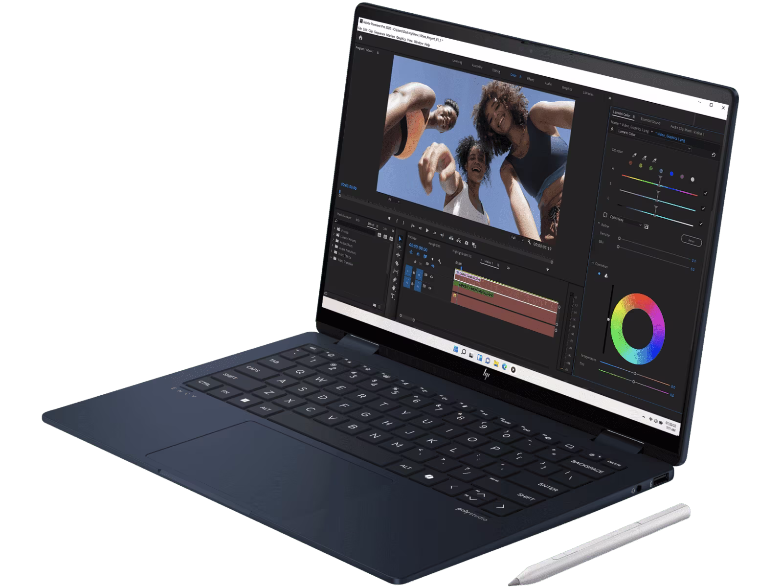 Da es sich um ein Convertible handelt, ermöglicht das Envy x360 14 auch Touch- und Stifteingaben. Im Lieferumfang ist ein HP MPP 2.0 Kippstift enthalten, mit dem Sie präzise Notizen machen und Skizzen anfertigen können.