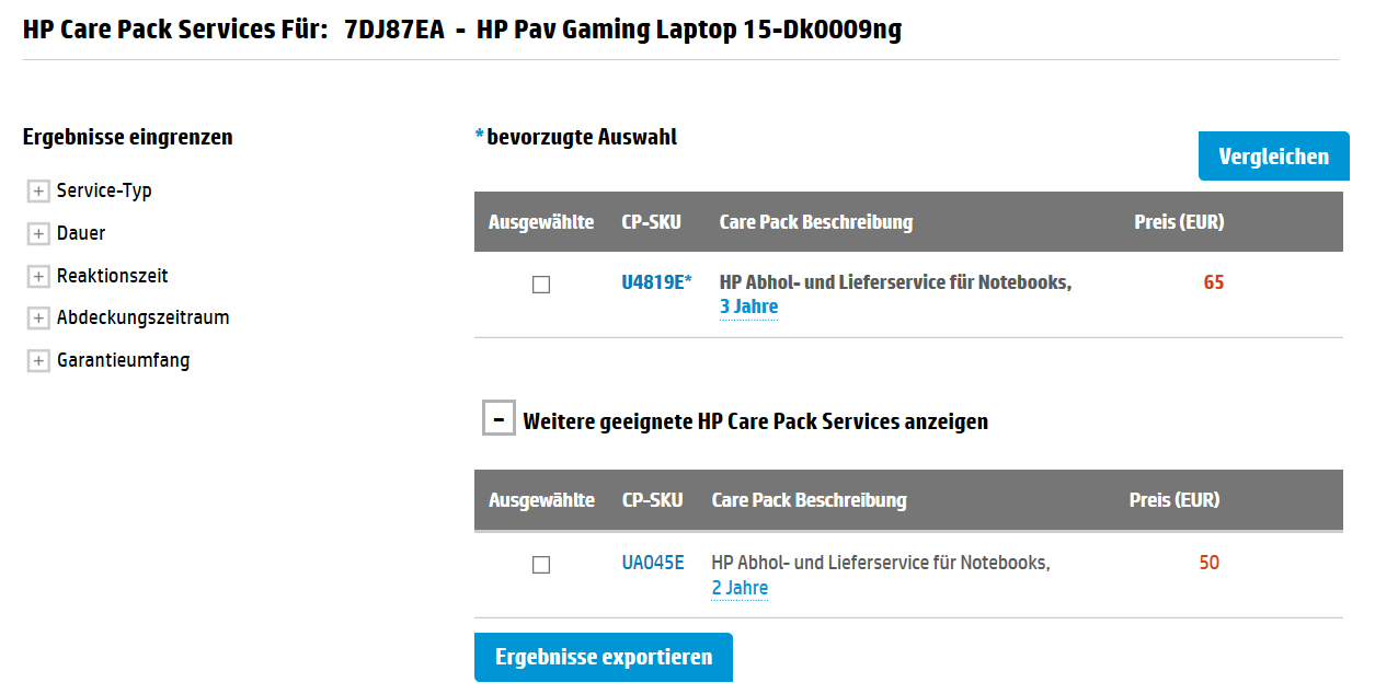 Den Rotstift hat HP bei der Garantie angesetzt. Das Gaming Pavilion verfügt nur über eine nicht zeitgemäße, einjährige Garantie. Umfang und Zeitraum können aber in Form sogenannter Care Packs erweitert werden. HP hält zwei Care Packs für das Notebook bereit: Eine zwei- bzw. dreijährige Garantie wäre für 50 bzw. 65 Euro zu bekommen - inklusive Abhol- und Lieferservice.