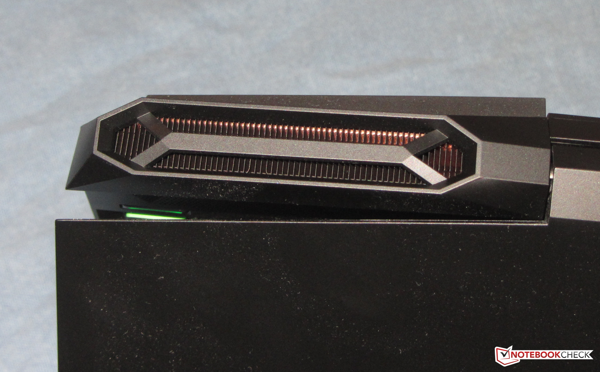 Verarbeitungsmängel offenbart der 15,6-Zöller nicht. Die Spaltmaße stimmen und Materialüberstände sind nicht aufzuspüren. Kritik gebührt allerdings den beiden unteren Ecken des Deckels als auch den Ecken, die sich an den Erhebungen der Luftauslassöffnungen befinden (siehe Bild). Diese fallen sehr spitz aus. Hier besteht Verletzungsgefahr.