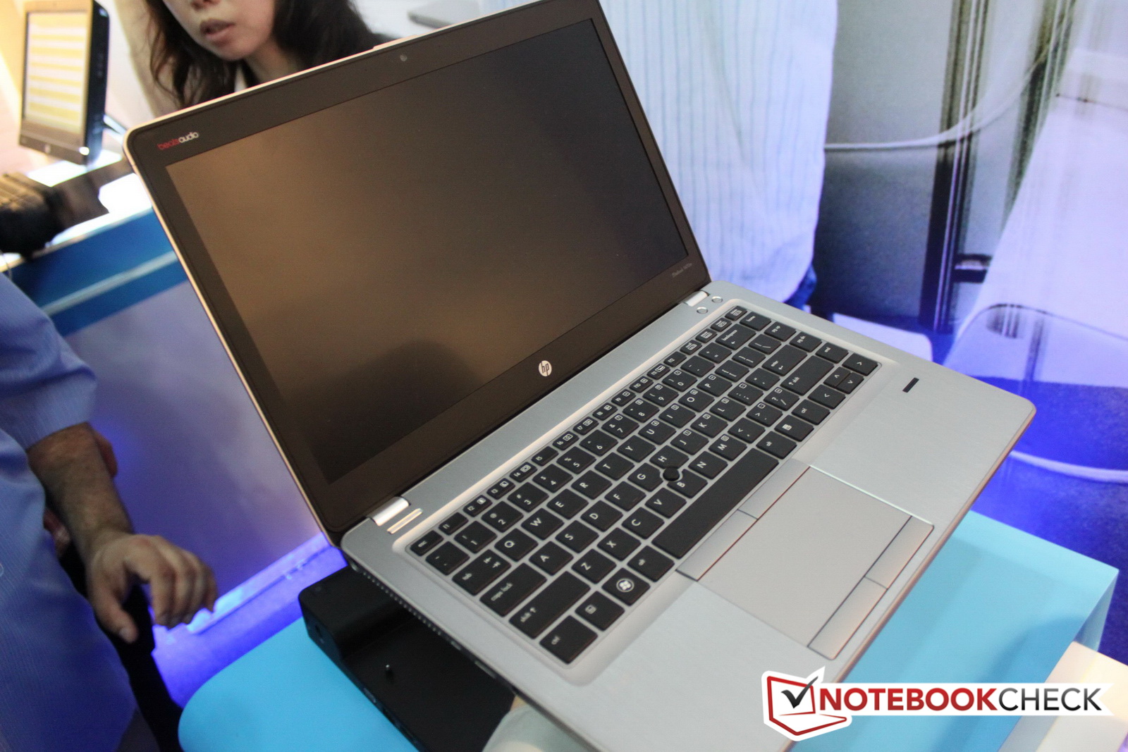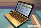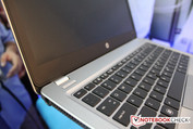 Von seinem neuen 14"-Business-Notebook EliteBook Folio 9470m hat HP auf dem Global Influencer Summit 2012 in Shanghai lediglich ein Mockup parat. Die Qualitätsanmutung des rund 1,6 Kilogramm schweren EliteBook Folio 9470m Mockups ist im Vergleich zur Envy-Serie deutlich wertiger. Das Folio 9470m wirkt auch mit dem optionalen Zusatzakku, der sich flächig wie ein zweiter Gehäuseboden unter das Notebook schnallen lässt, noch sehr kompakt.