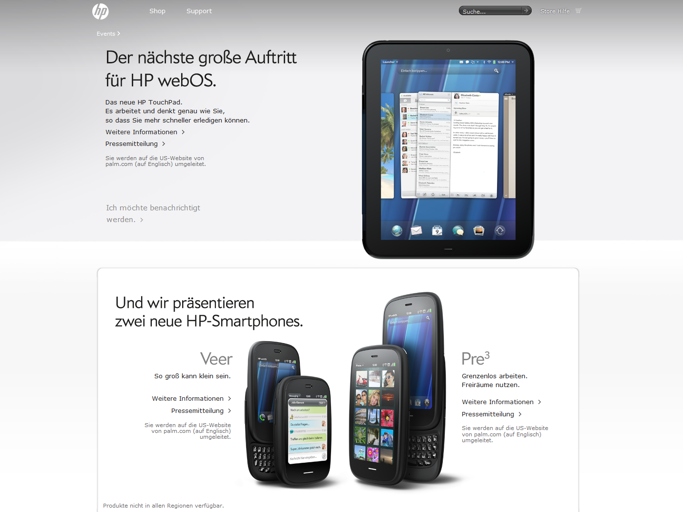 Wermutstropfen: Das HP TouchPad soll erst ab Sommer als WLAN-Version ohne GPS in den Handel kommen. Die G3/G4-Tablets sollen erst später an der Reihe sein. Preise nannte HP bisher ebenfalls nicht.