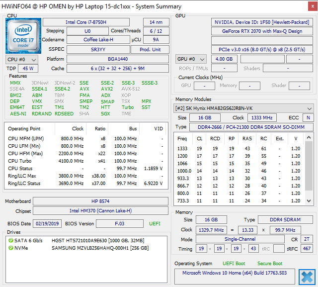 In unserem aktuellen Testmodell des HP Omen 15 kommt wieder ein 144-Hz-Panel zum Einsatz, welches von einer Nvidia GeForce RTX 2070 Max-Q versorgt wird. Für einen flüssigen Systembetrieb sorgen Intels Core i7-8750H und 16 GB Arbeitsspeicher. Das Betriebssystem ist auf einer 256 GB fassenden SSD installiert und eine 1 TB große HDD bietet genug Platz für die Installation von Spielen.