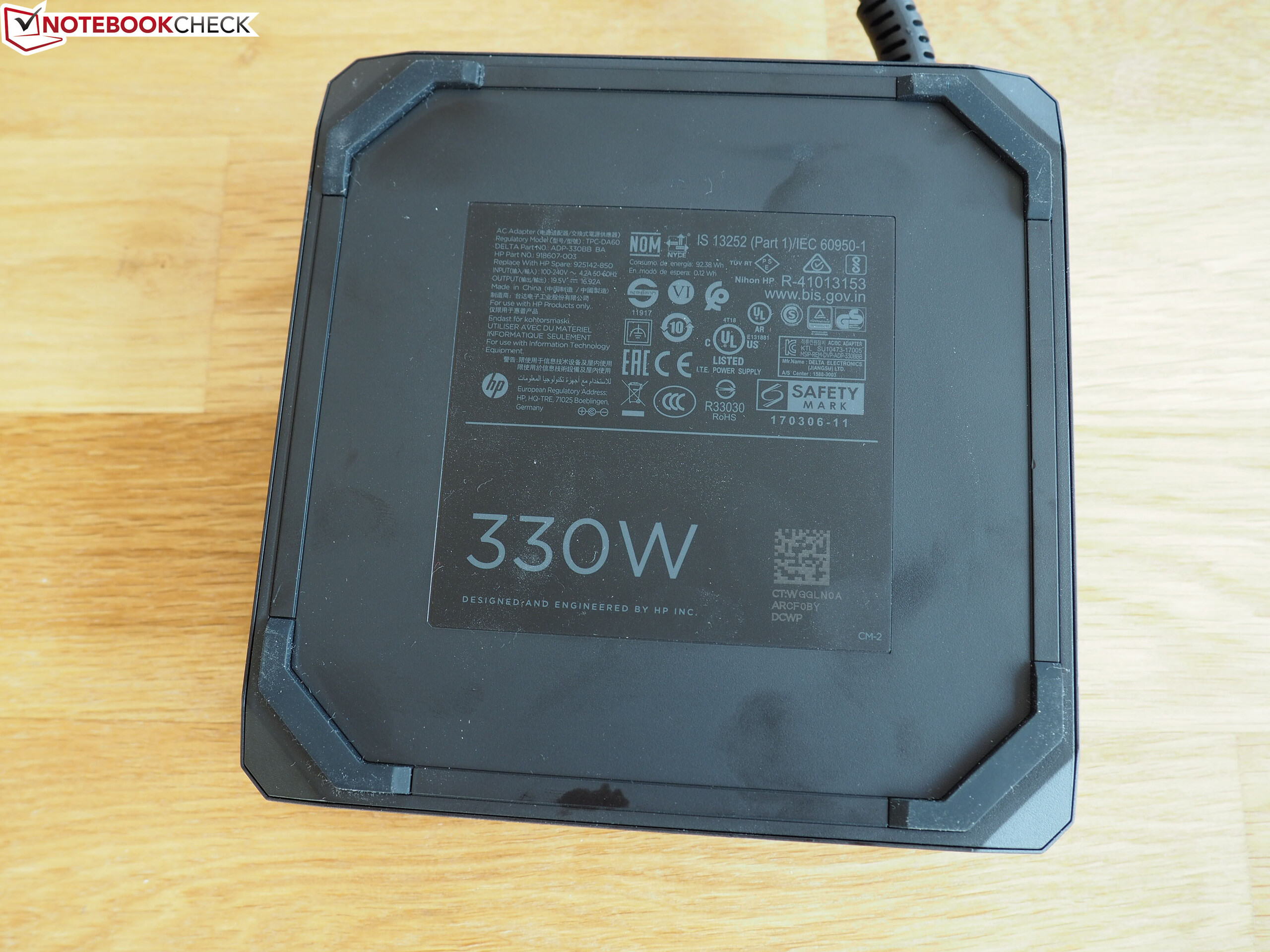 Die Abwesenheit von Nvidias Optimus-Technologie rächt sich speziell beim Stromverbrauch und der Akkulaufzeit. Im Idle-Modus benötigt das Omen 17 mit 26 bis 38 Watt deutlich mehr Energie als beispielsweise die MSI Notebooks GE75 9SG und GT76 9SG (14 bis 23 Watt). Unter Last ist der HP Laptop hingegen etwas sparsamer als die RTX-2080-Konkurrenz. Im 3D-Betrieb gab unser Messgerät zwischen 106 und 287 Watt aus. Das mitgelieferte 330-Watt-Netzteil hat also noch Spielraum.
