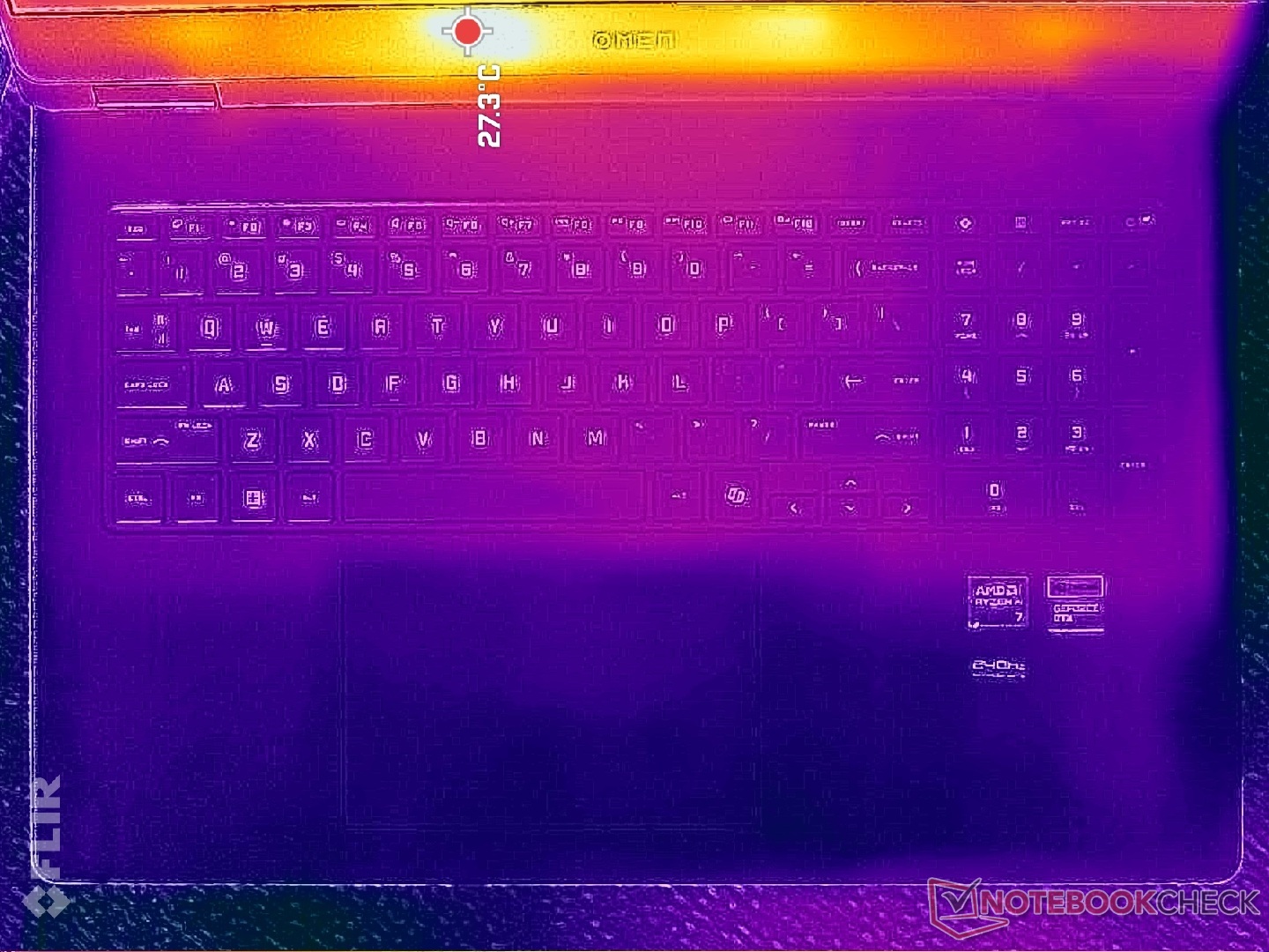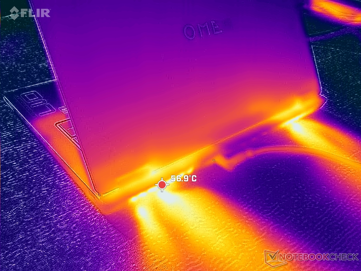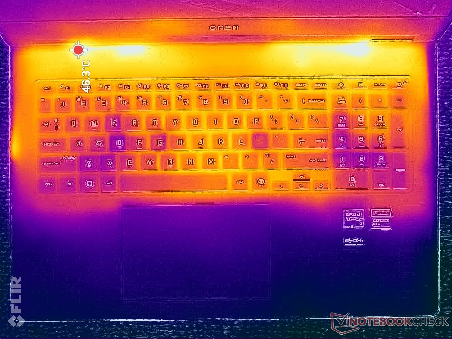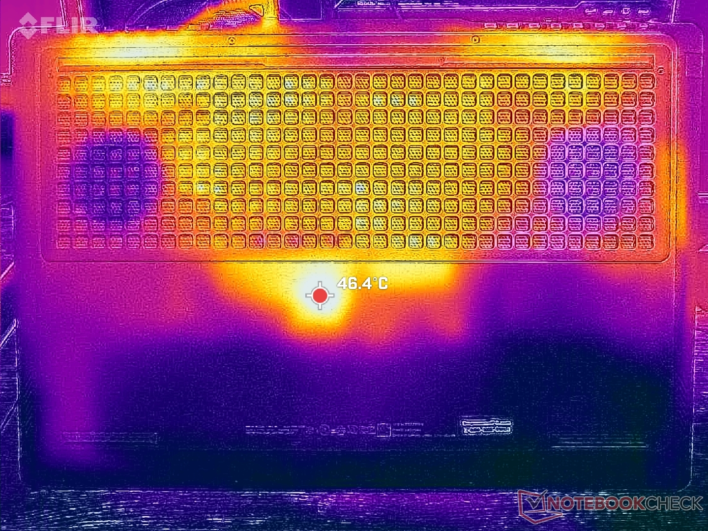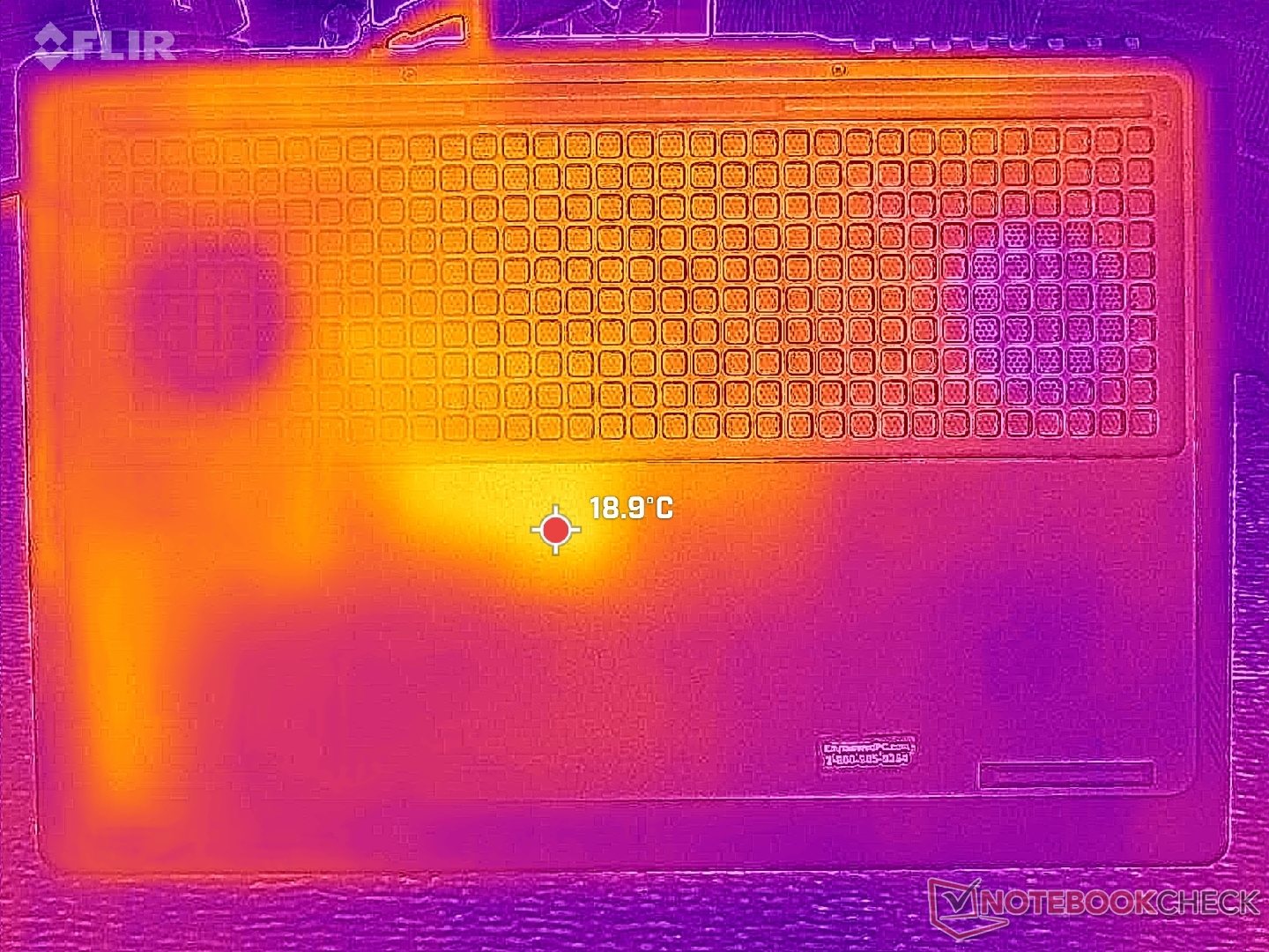 Die durchschnittlichen Oberflächentemperaturen sind um einige Grad Celsius kühler als die des Konkurrenzprodukts Lenovo LOQ 17IRX10, bei dem unter ähnlichen Bedingungen Hotspots von über 45 °C auftreten können.