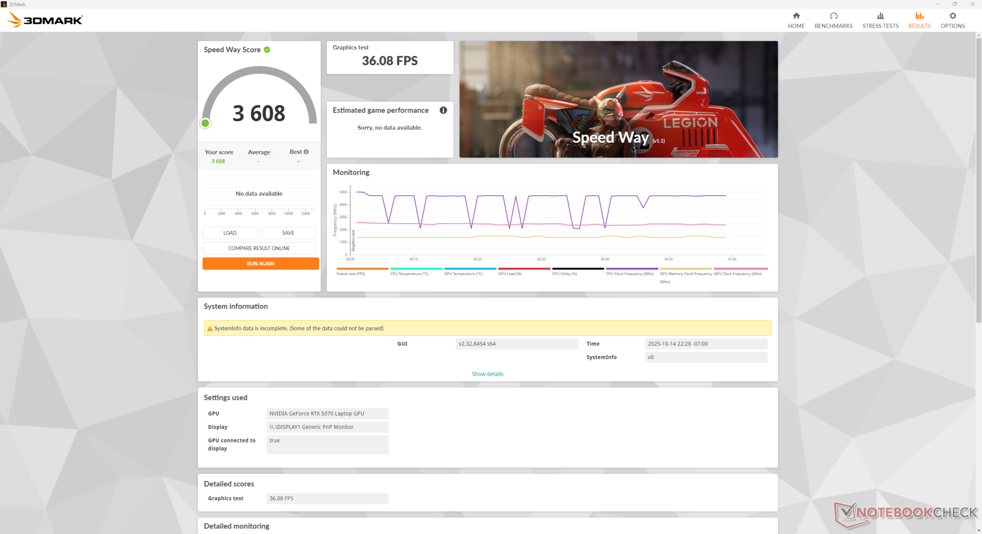Der durchschnittliche Verbrauch unter Last ist im Allgemeinen niedriger als bei unserem letztjährigen Modell, obwohl unser neueres Omen 17 eine höhere Leistung bietet. Wenn man zum Beispiel Cyberpunk 2077 spielt, benötigt unser 2025 Omen 17 etwa 12 Prozent weniger Strom und läuft gleichzeitig 17 Prozent schneller, was eine bessere Leistung pro Watt bedeutet. Die Vorteile bei der Bildrate können sogar noch größer sein, wenn man die Multi-Frame-Generierung nutzen, da diese Funktion bei den GPUs der Serie GeForce RTX 40 nicht verfügbar ist.