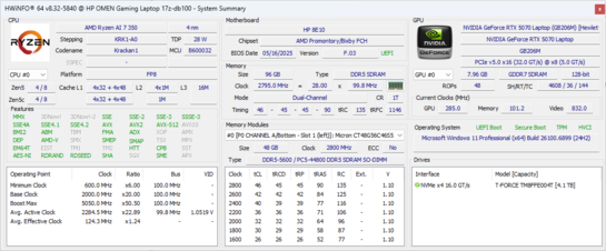 | HP Omen 17-db0079ng AMD Ryzen 7 8845HS ⎘ NVIDIA GeForce RTX 4070 Laptop GPU ⎘ 32 GB RAM, 1024 GB SSD | Amazon: 1. 91,40 € dekoelektropunktde 512GB M.2... 2. 97,20 € dekoelektropunktde 512GB M.2... 3. 163,30 € dekoelektropunktde 1TB M.2 N... Listenpreis: 1900€ | 2.8 kg | 30.1 mm | 17.30" 2560x1440 170 PPI IPS | |