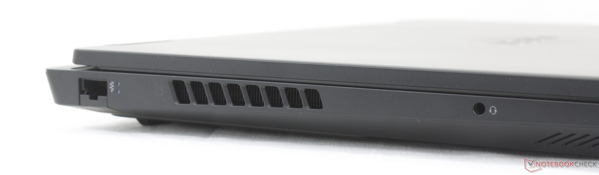 Die meisten Anschlüsse befinden sich auf der Rückseite, ähnlich wie bei dem bereits erwähnten LOQ 17. Tatsächlich teilen sich die beiden Modelle fast die gleichen Ports, wobei das Lenovo insgesamt einen USB-A-Anschluss mehr hat. Zu beachten ist, dass der einzige USB-C-Anschluss kein Thunderbolt unterstützt.