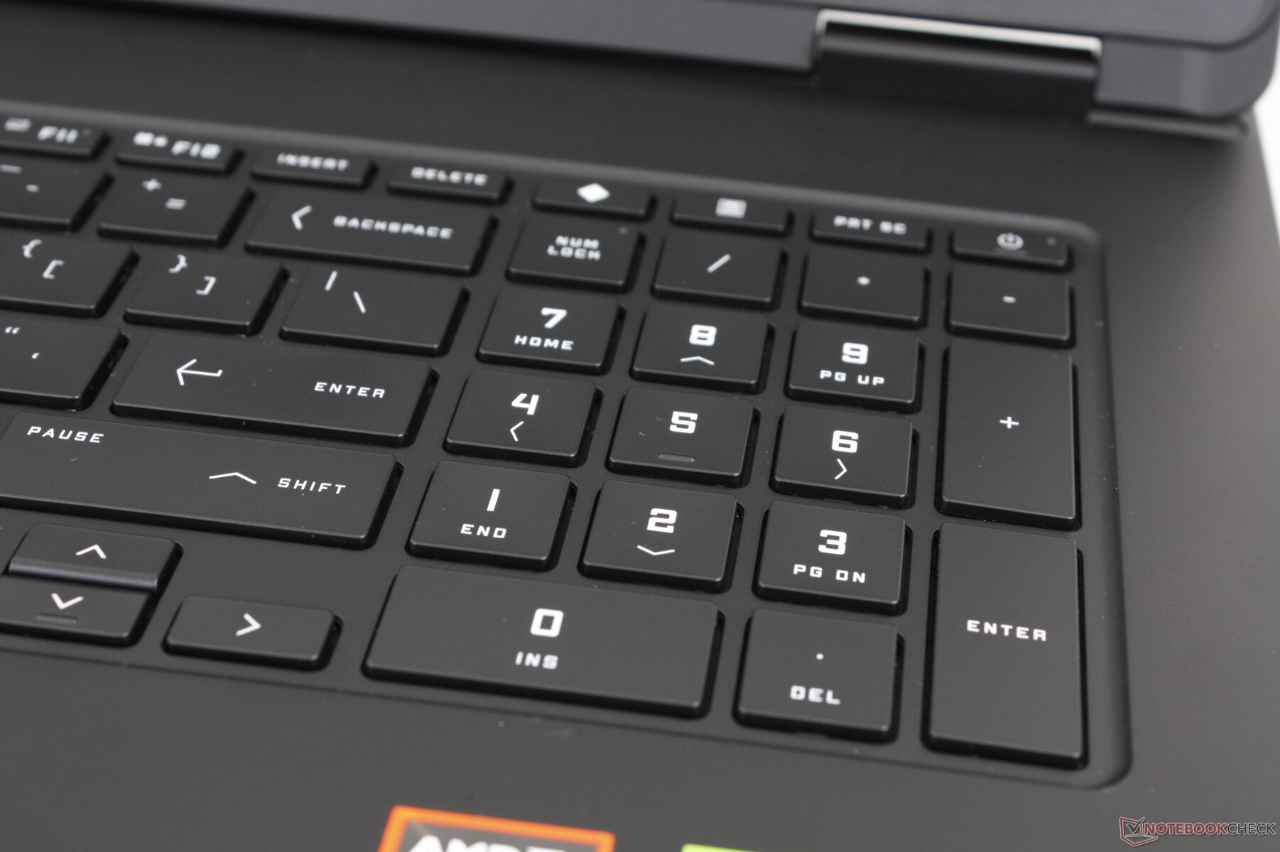 Das Tasten-Feedback ist eher flach und sehr leicht, besonders für ein Gaming-Notebook. Gamer, die festere und "klickigere" mechanische Tastaturen bevorzugen, könnten die Tasten des Omen 17 als zu weich empfinden. Für allgemeine Schreibarbeiten und Dateneingaben funktioniert die Tastatur dank dem integrierten Nummernblock jedoch gut.