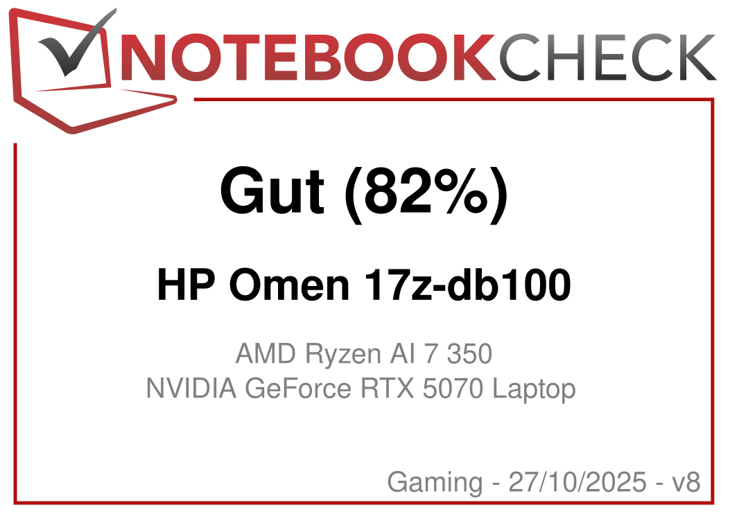 Der HP Omen 17 ist ein solider Gaming-Laptop der Mittelklasse mit einer Ausstattung, die gerade leistungsstark genug ist, um Gelegenheitsspieler zufriedenzustellen. Vor allem das 2K-1.440p-240-Hz-Display ist ein Highlight, das zusammen mit der AMD Ryzen AI 7 CPU und der GeForce RTX 5070 GPU für eine verbesserte Leistung pro Watt im Vergleich zum Omen 17 des letzten Jahres sorgt. Auch die niedrigen Kerntemperaturen verdienen Lob, da die Prozessoren beim Spielen kaum die 70-°C-Marke knacken, verglichen mit 80 °C oder mehr bei dünneren oder leichteren Alternativen.