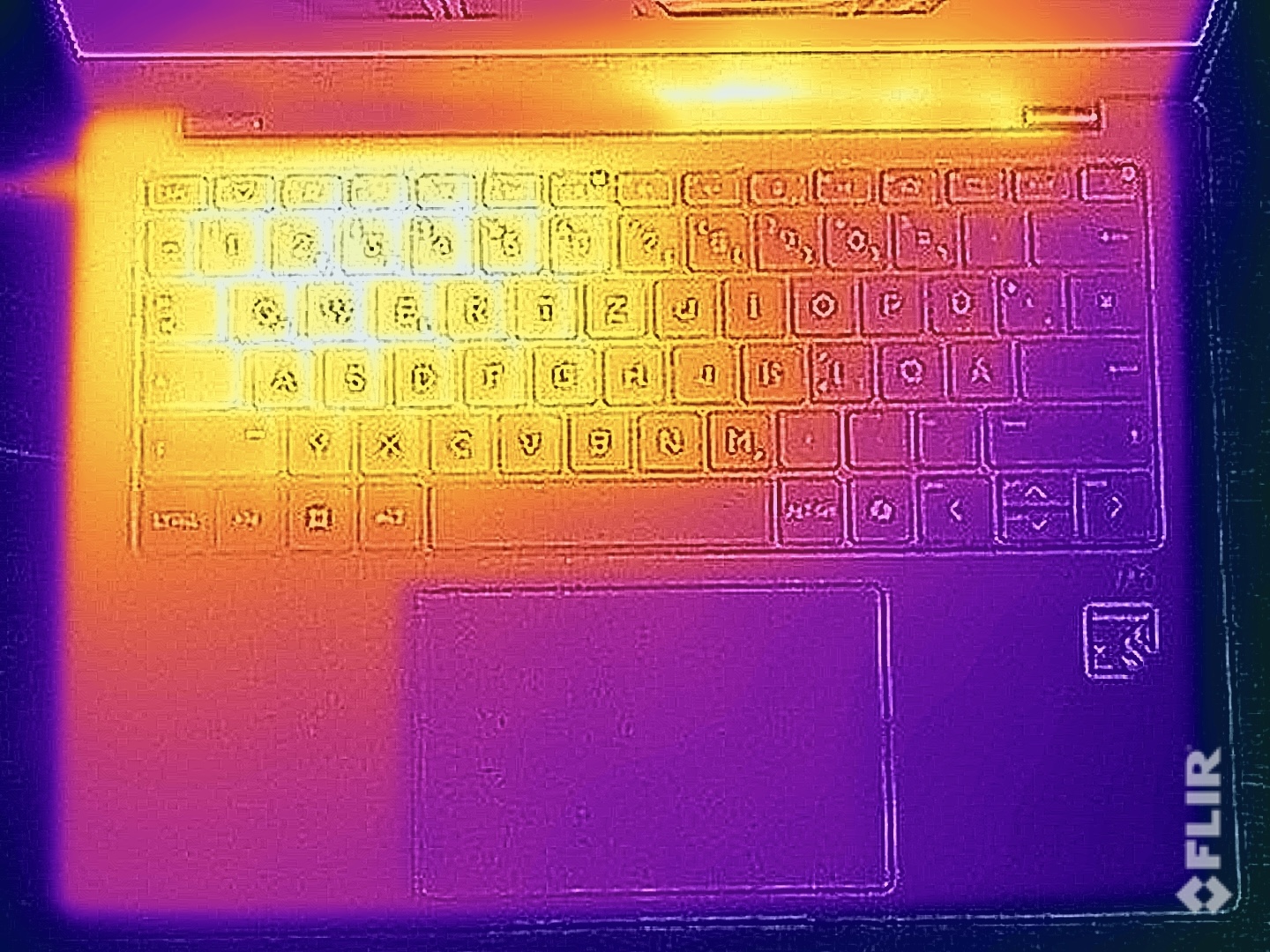 In den Idle-Messungen zeigt sich der Vorteil des dunklen und niedrig aufgelösten Displays, denn es verbraucht nicht viel Strom. Unter Last messen wir kurz maximal knapp 68 Watt, was sich dann im Laufe des Stresstests bei rund 35 Watt einpendelt. Das mitgelieferte 65-Watt-Netzteil ist daher ausreichend dimensioniert und der Akku wird auch zu Beginn des Stresstests nicht angezapft. Der Standby-Verbrauch ist mit 0,8 Watt etwas erhöht.