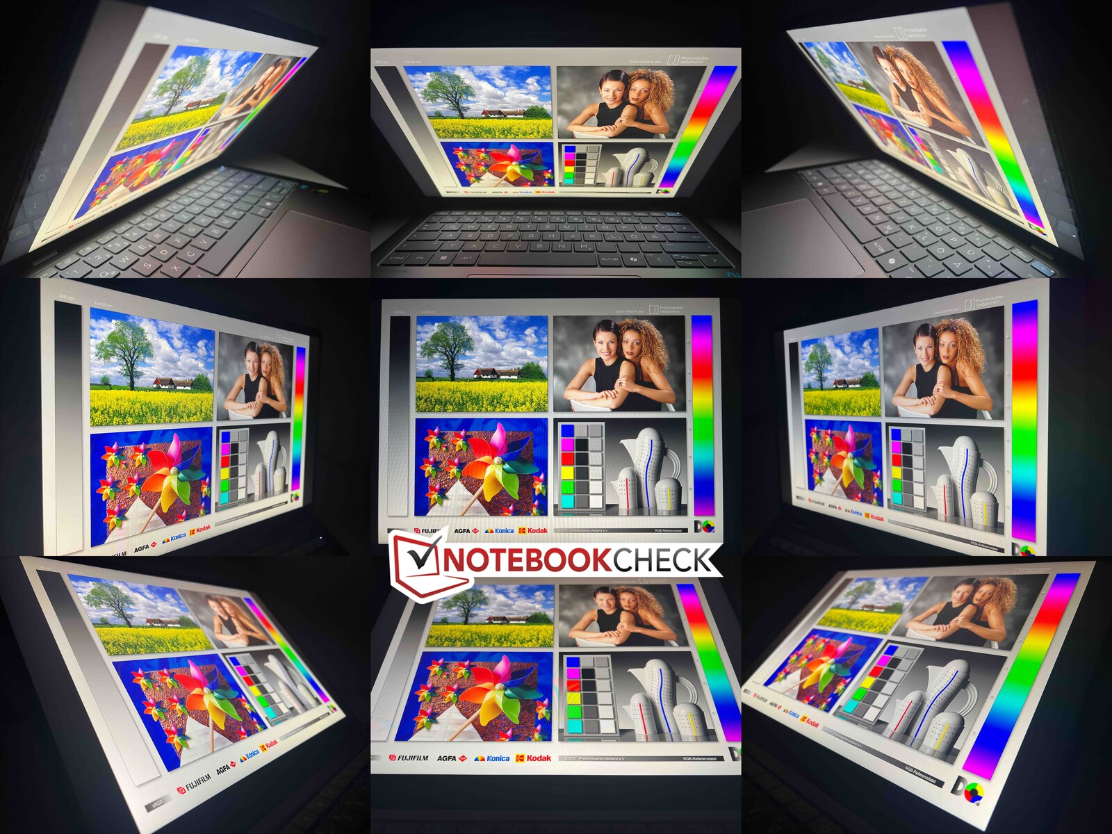 Wie schon beim OmniBook 14 Ultra setzt HP auch bei der Snapdragon-Variante auf ein 14 Zoll großes IPS-Display mit der Auflösung von 2.240 x 1.400 Pixeln (16:10), allerdings unterscheidet sich die Panel-ID. Gerade bei der Helligkeit schneidet das Testgerät mit einem durchschnittlichen Wert von weniger als 300 cd/m² noch einmal deutlich schlechter ab und ist damit auch das mit Abstand schwächste Gerät im Vergleich. Für sich gesehen sind Inhalte ausreichend scharf, Farben sind kräftig und der Kontrast ist hoch. Allerdings merkt man im Alltag deutlich die Frequenz von 60 Hz in Verbindung mit den langsamen Reaktionszeiten, was auch zu sichtbarem Ghosting führt. PWM-Flackern kommt nicht zum Einsatz, es gibt aber deutlich sichtbare Lichthöfe. Weder die Helligkeit noch die Farbtemperatur können automatisch geregelt werden.