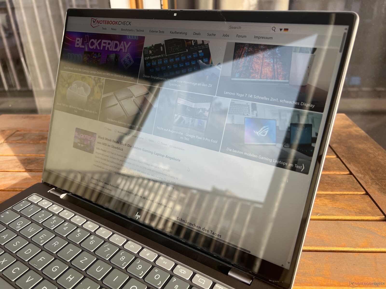 Das größere Problem ist jedoch das Display, denn HP verwendet hier ein IPS-Panel mit einer Helligkeit von knapp 300 cd/m². Zusammen mit der stark spiegelnden Oberfläche ist das in einigen Situationen einfach zu wenig. Gleichzeitig wird der subjektive Bildeindruck noch durch die geringe Frequenz von 60 Hz sowie die langsamen Reaktionszeiten (sichtbares Ghosting) getrübt. Der einzige wirkliche Vorteil des Panels ist der geringe Stromverbrauch, weshalb auch die Akkulaufzeit sehr gut ausfallen.